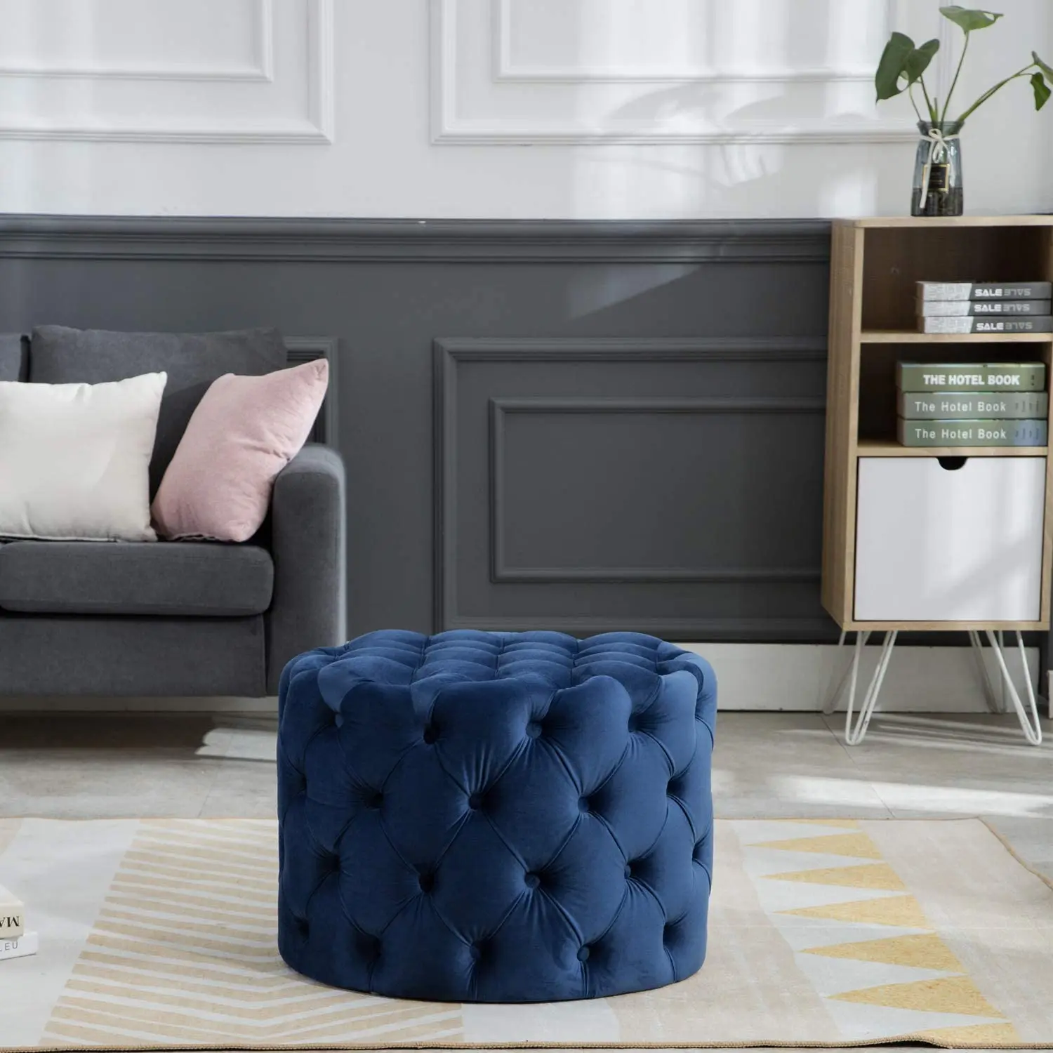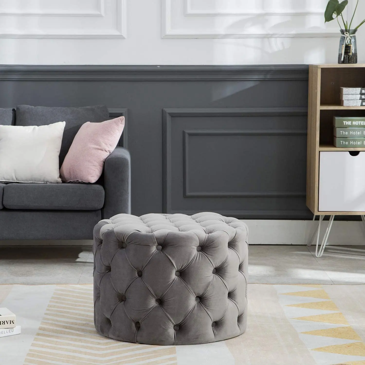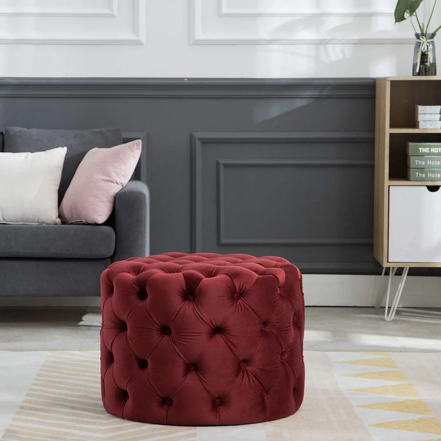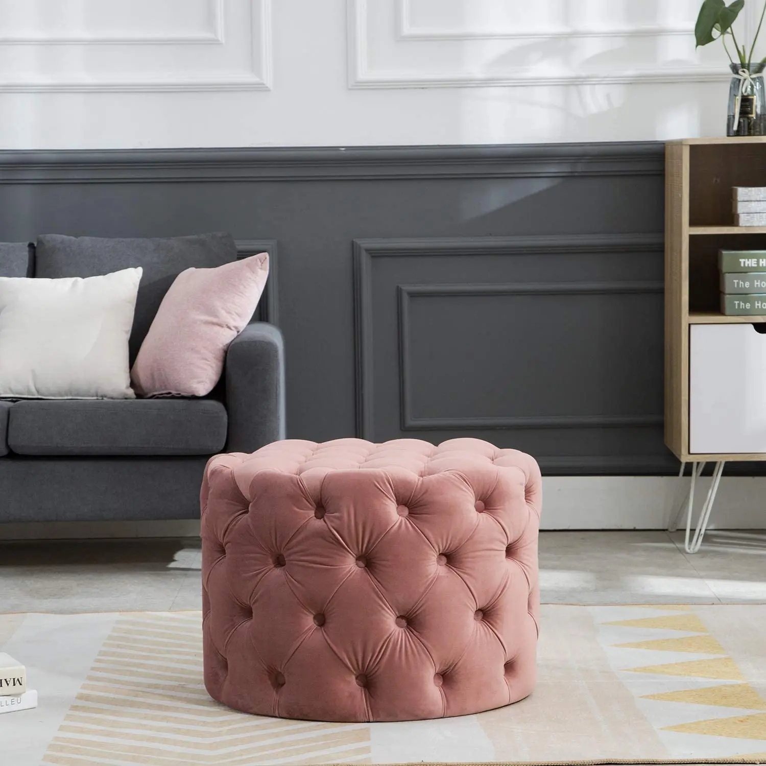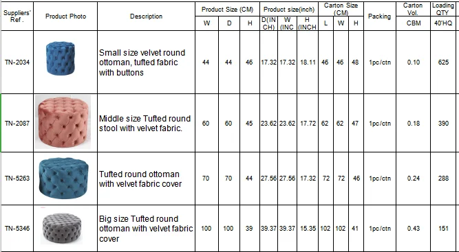 Description | Velvet round ottoman, tufted fabric with buttons | ||||