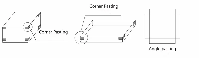 High speed Automatic corner pasting machine It can pastes four corners at one time. The machine is controlled by PLC. The belt will take the cardboard to the mold.Then mold takes the cardboard to pasting position. And the convey belt deliver the box out of machine. The machine is easy changing and fast job setting. It also has stopping function after finished cardboard and hot-melt tape finished alarm function.