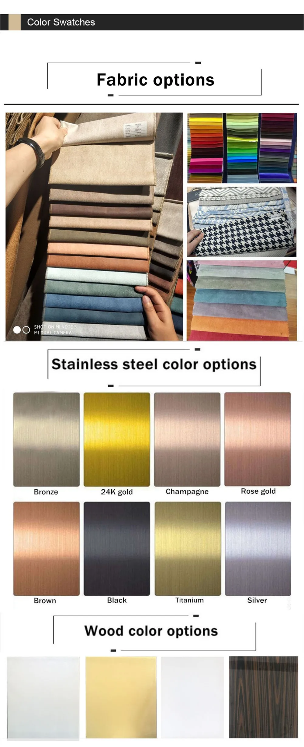 A4.Yes. You can choose from our available fabric or leather sampels.