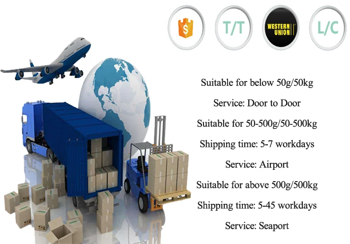 Paypal,Western Union,T/T or just provide your courier's account number, we prefer FEDEX.