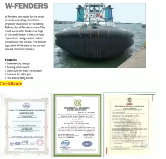 W shape tug rubber fender is one of the most successful fenders in the world today. It has a unique 'open bore' design which makes installation very simple. The flexible legs allow M-fenders to be curved around most hull shapes.