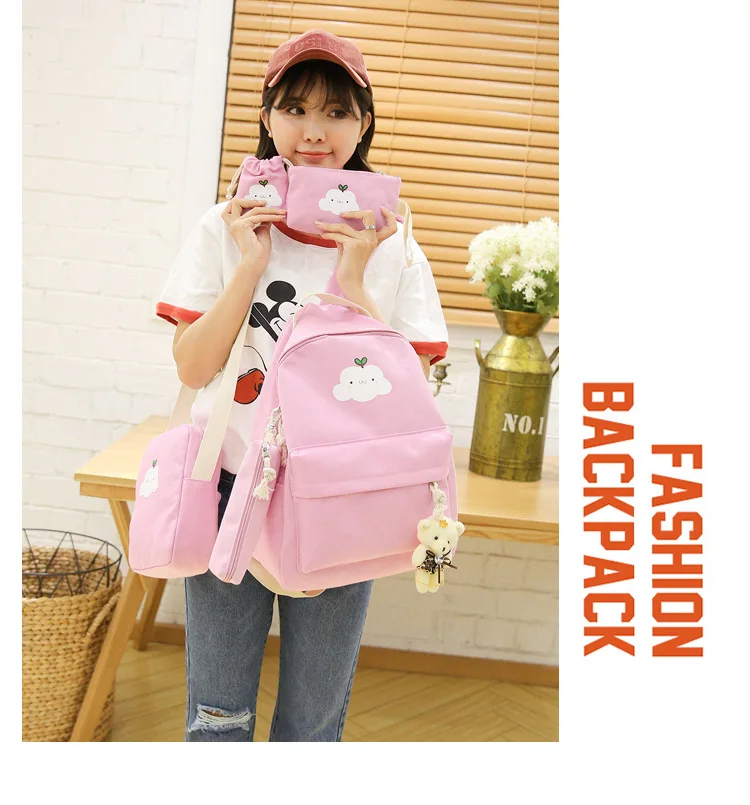 Product Name | Hot Selling 5pcs Shoulder Teen Girl Backpack Set Canvas Middle High School Student Bag Backpacks |
