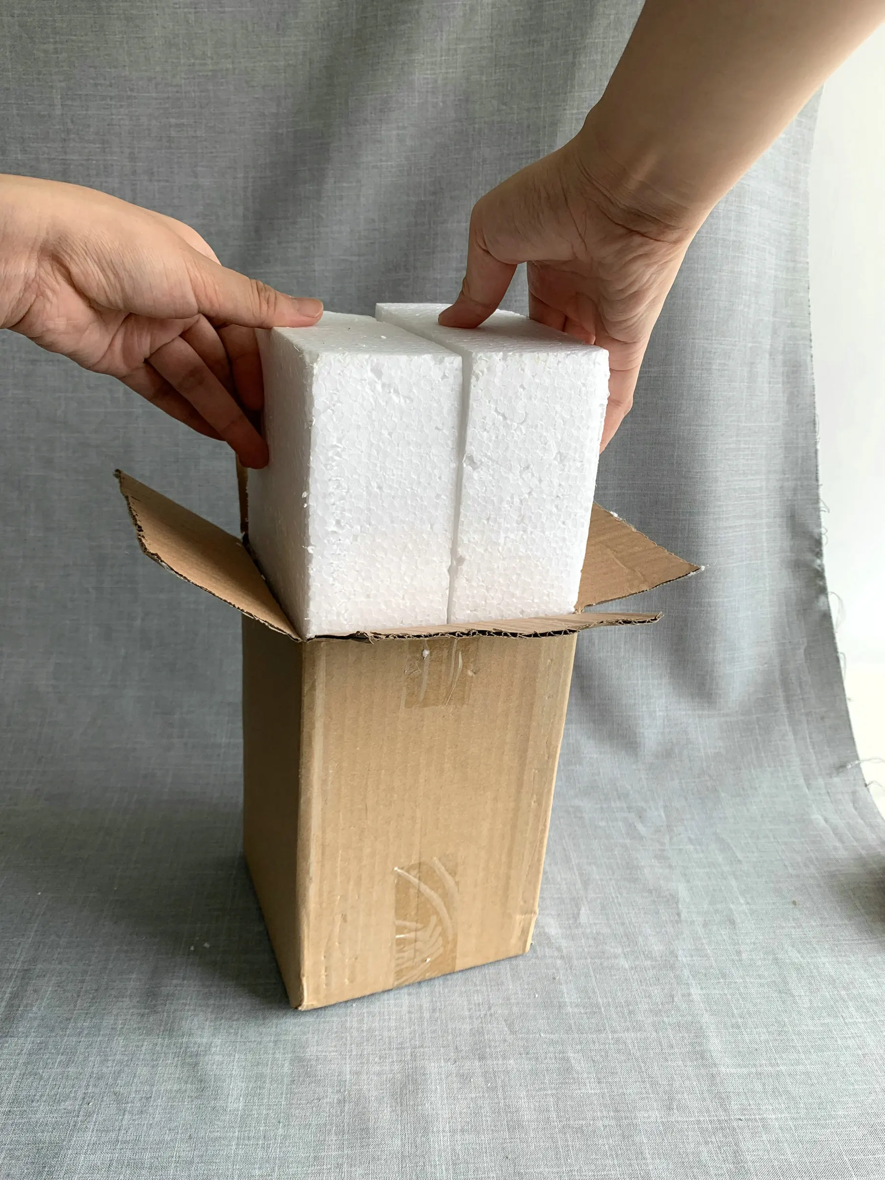A PE bag cover the goods with hole first, Polyfoam to wrap the goods + inner brown boxes + master brown cartons [nail wooden batten if necessary (USD10/CBM surcharges)]