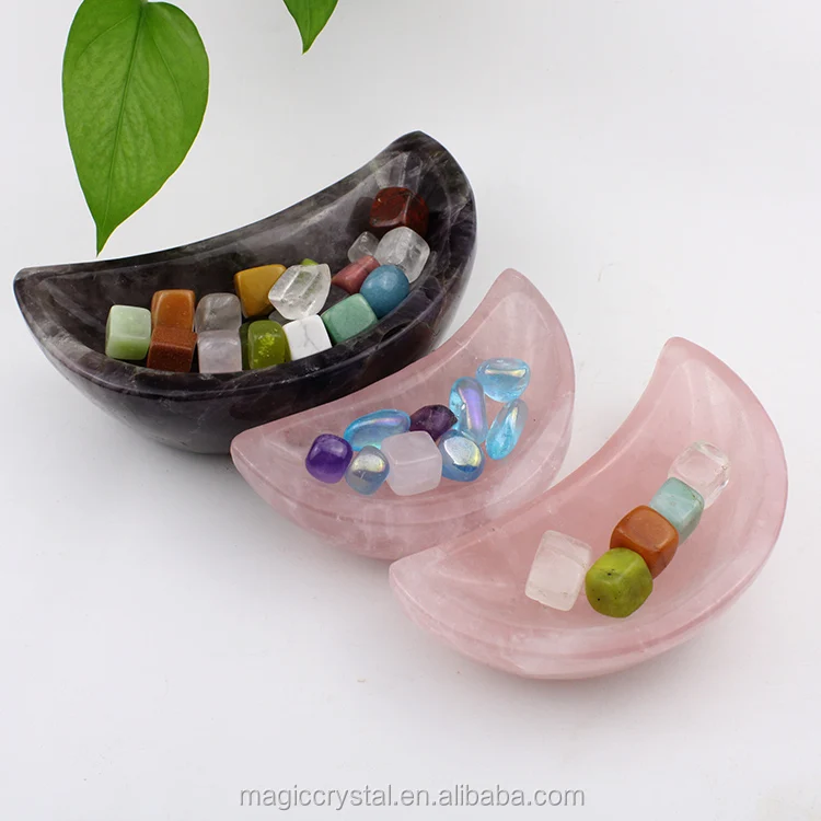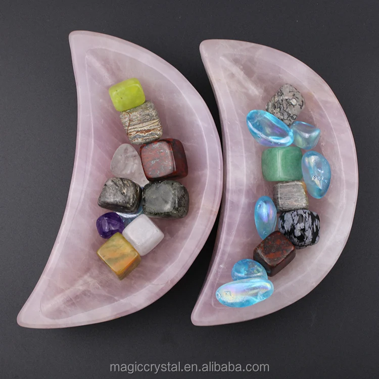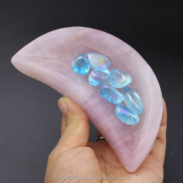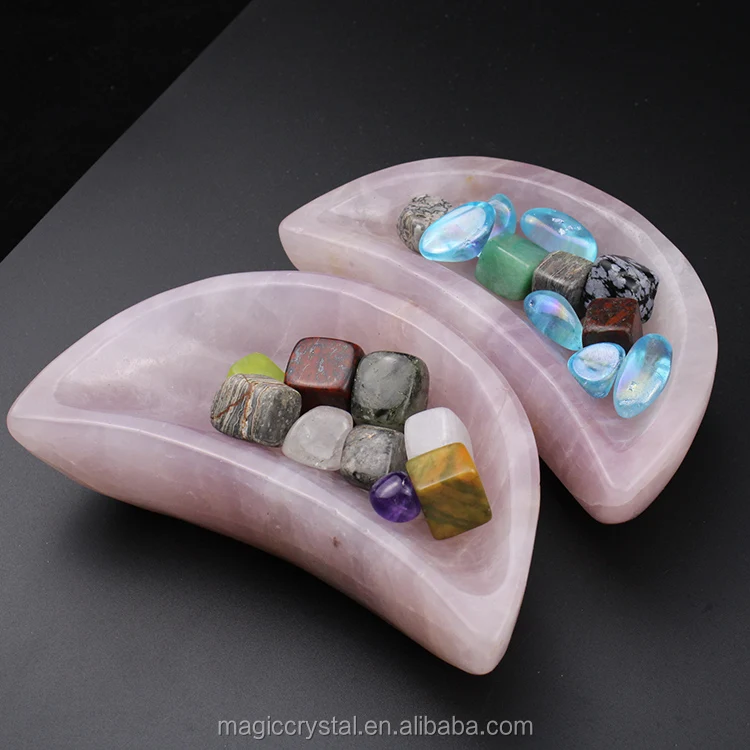 name | Factory Produce Hand Carved Moon Shaped Natural Pink Rose Quartz Crystal Bowls For Home Decoration | ||||