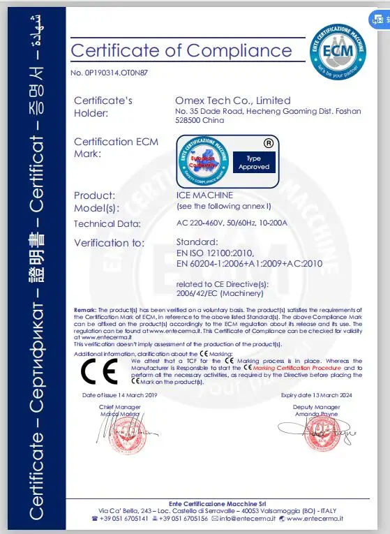 Provides multiple functions such as automatically turn on and shut down. Ice falling and Ice outgoing automatically, can be connected with automatic ice packing machine or convery belt.