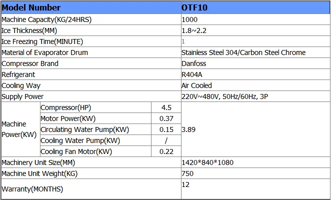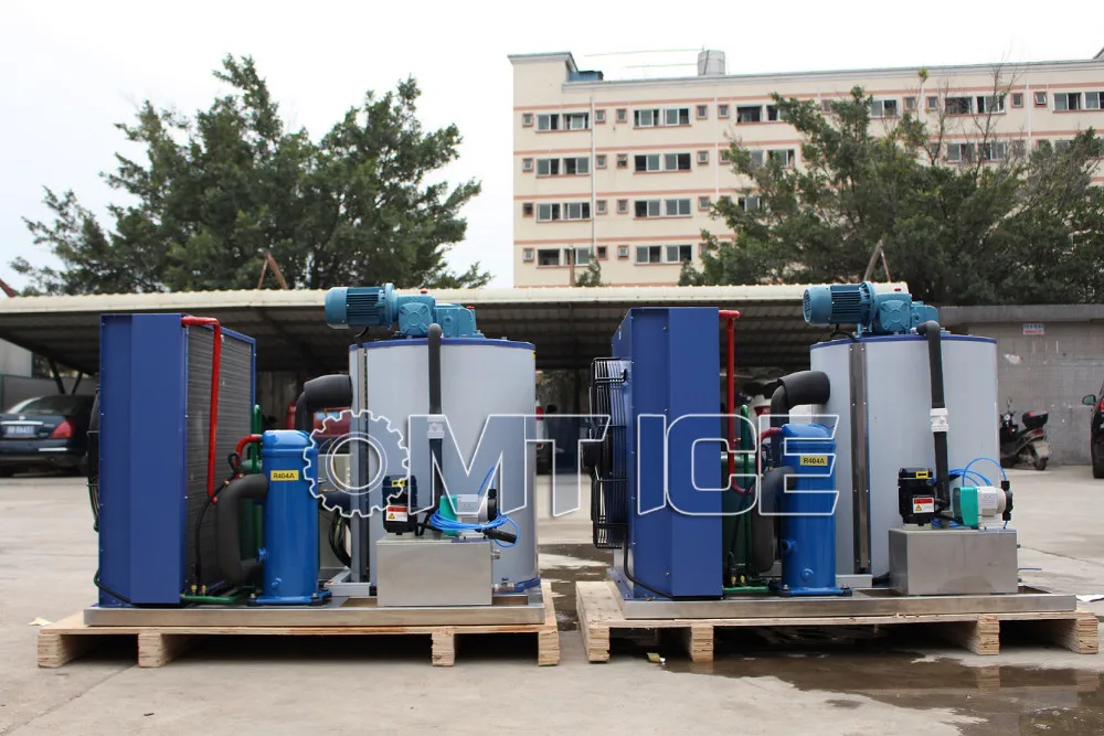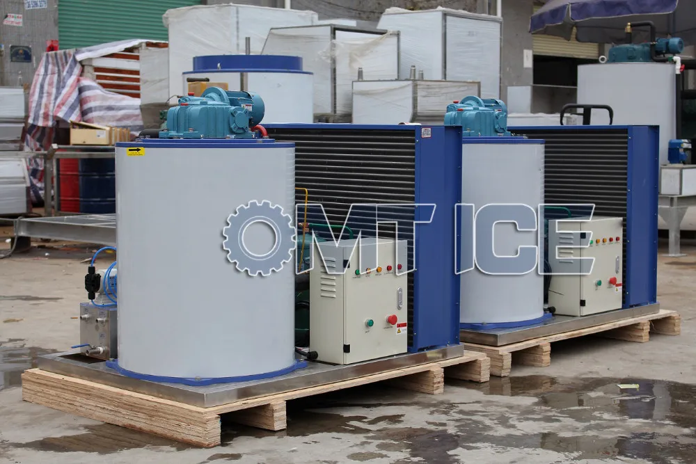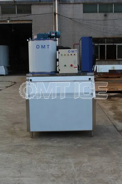 OMT 1Ton/24hrs Commercial used Flake ice making machine with ice storage bin. It adopt air cooling condenser, Danfoss Denmark compressor and world brand components.