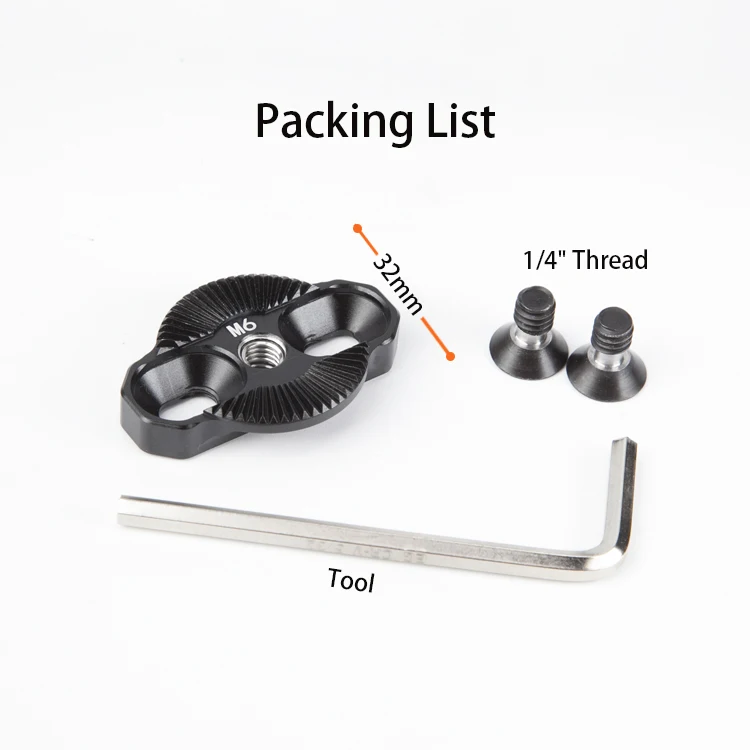 Net Weight (Kg) | 0.05 | Packing List | 1x ARRI standard rosette mount, 2x 1/4” screw, 1x hex spanner | |||||
