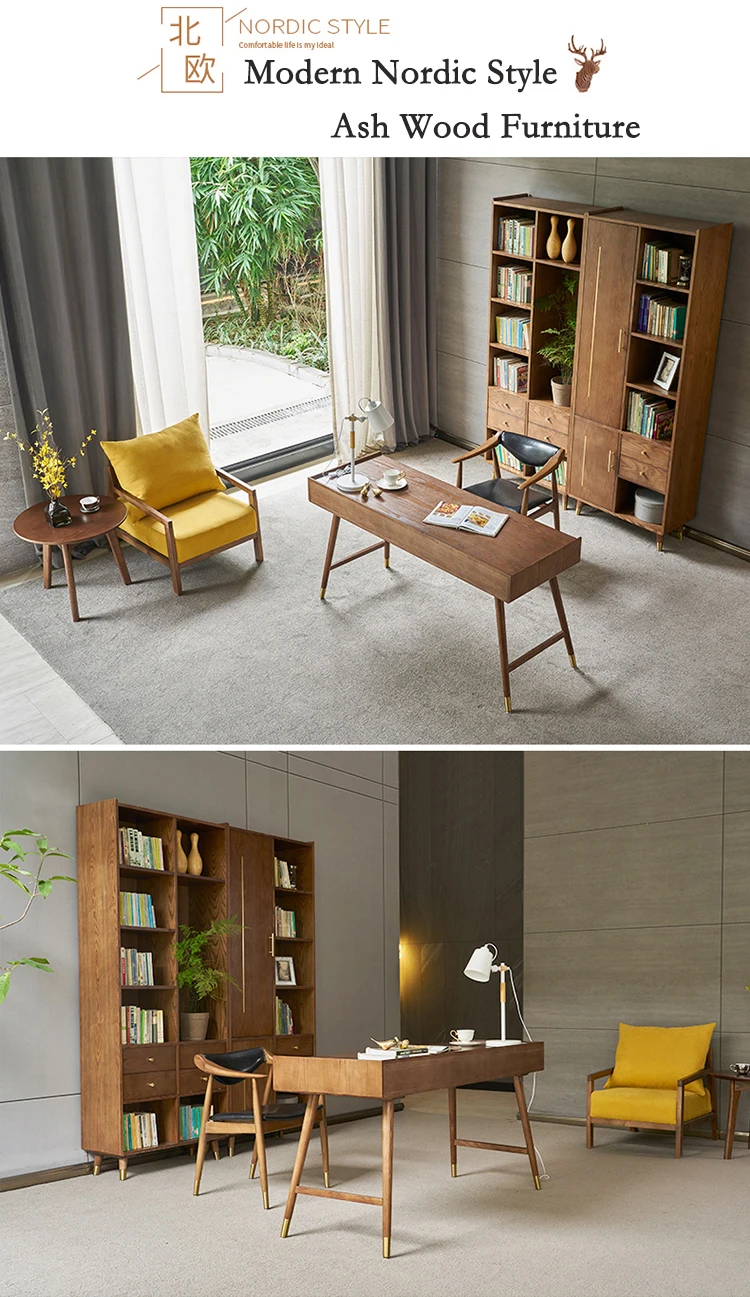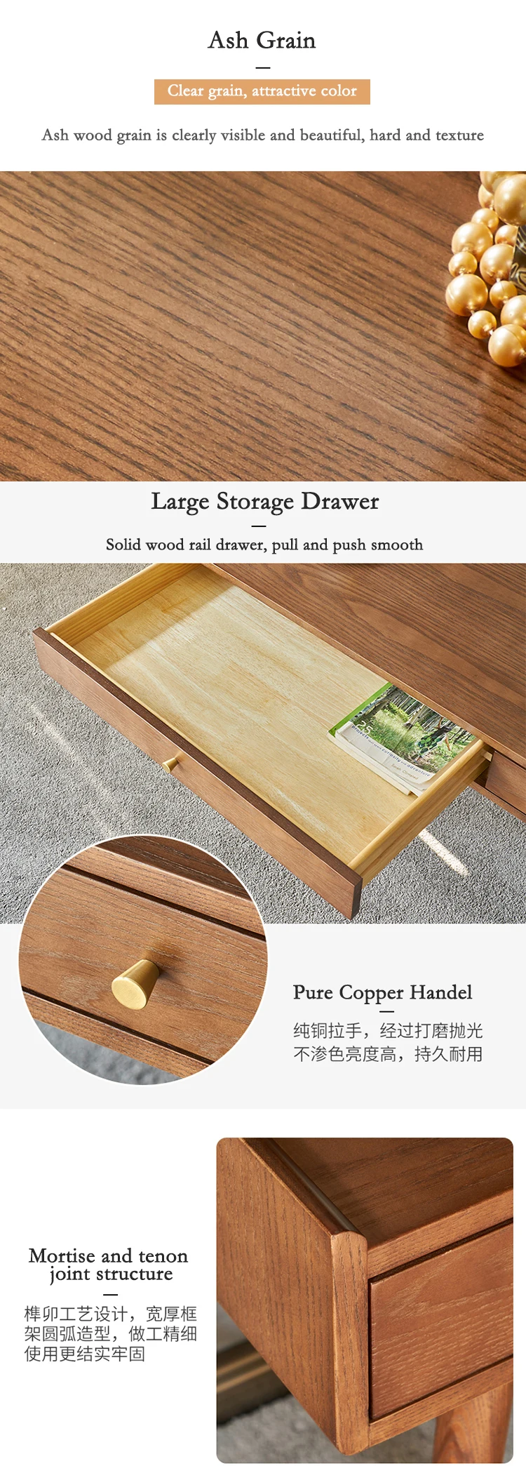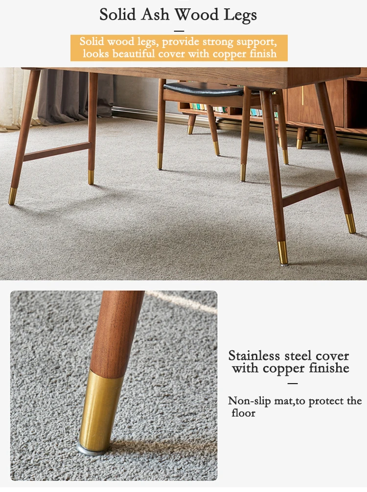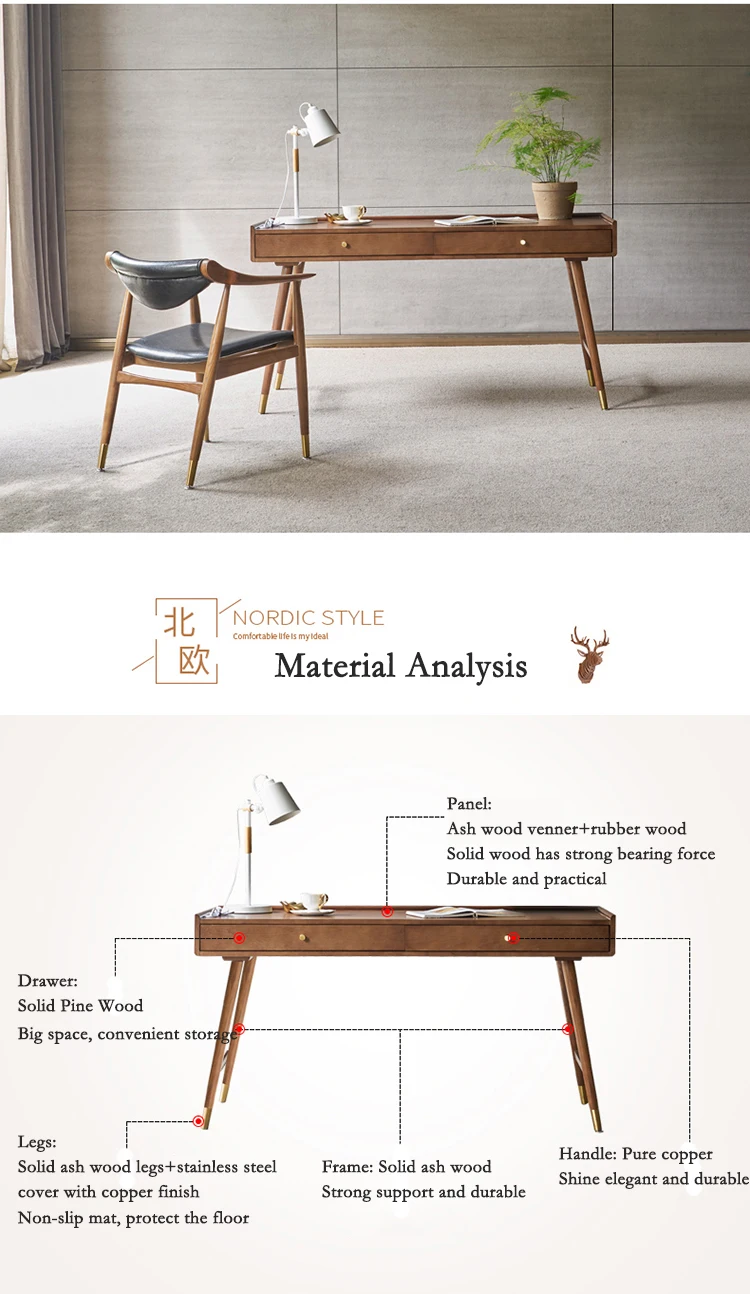 Main Materials | Ash wood legs + Rubber wood with ash veneer + Pinewood for drawer inside |