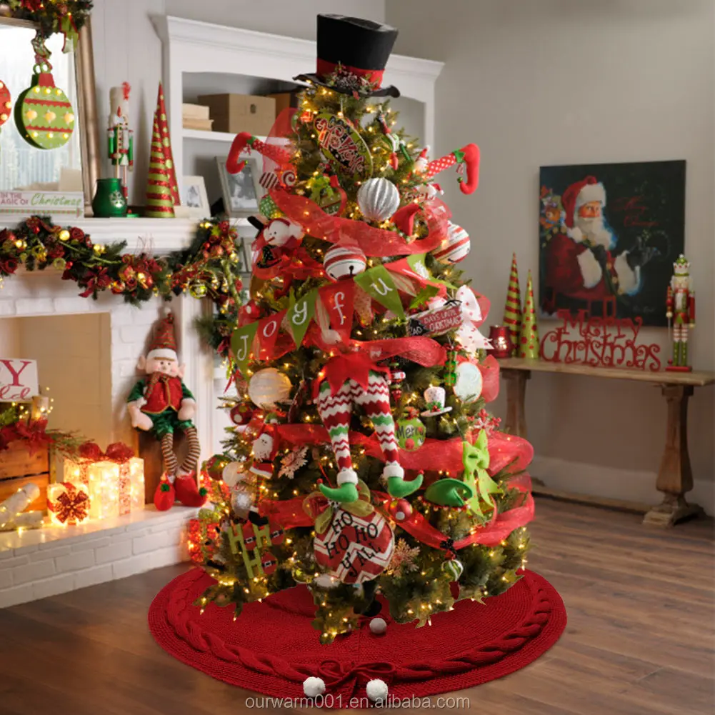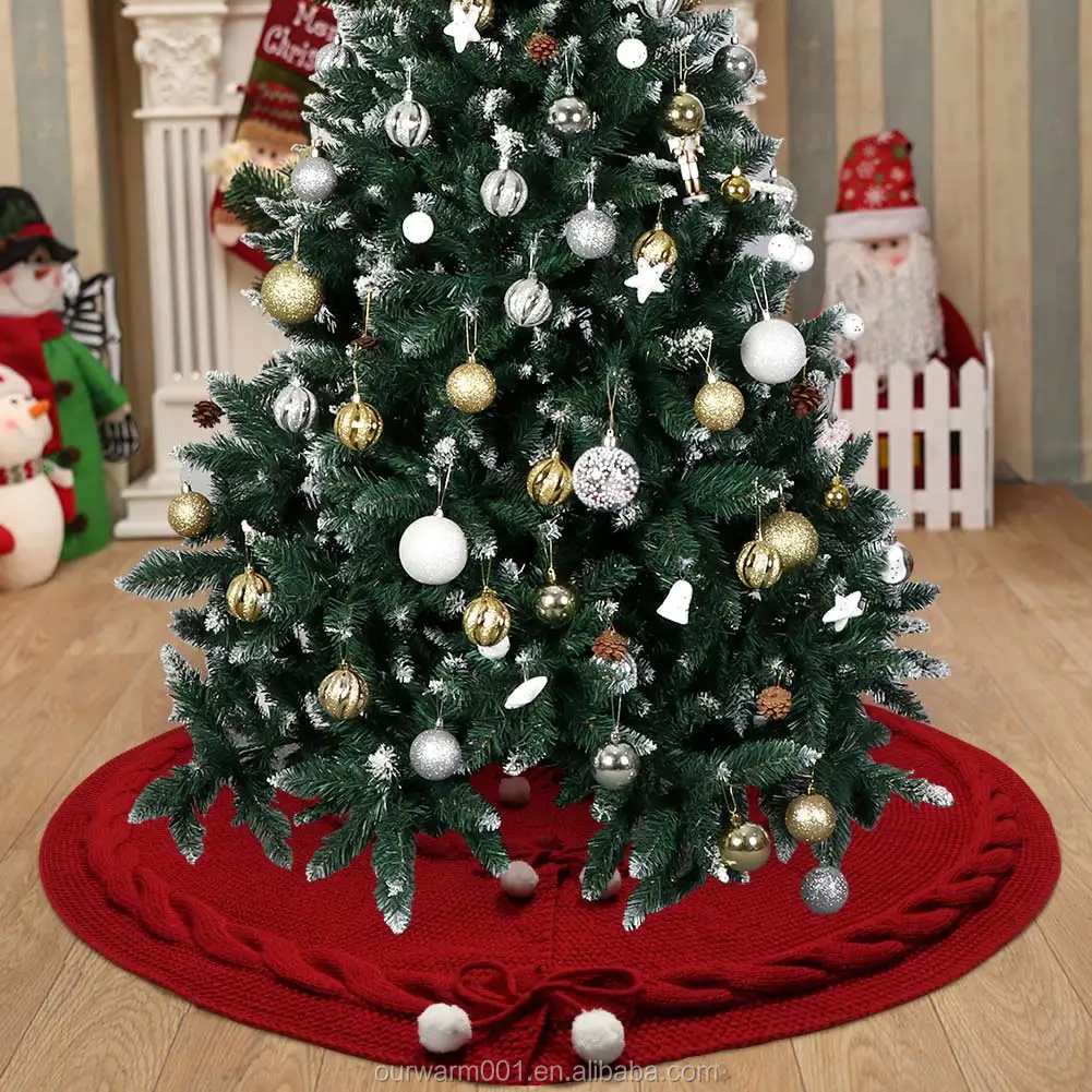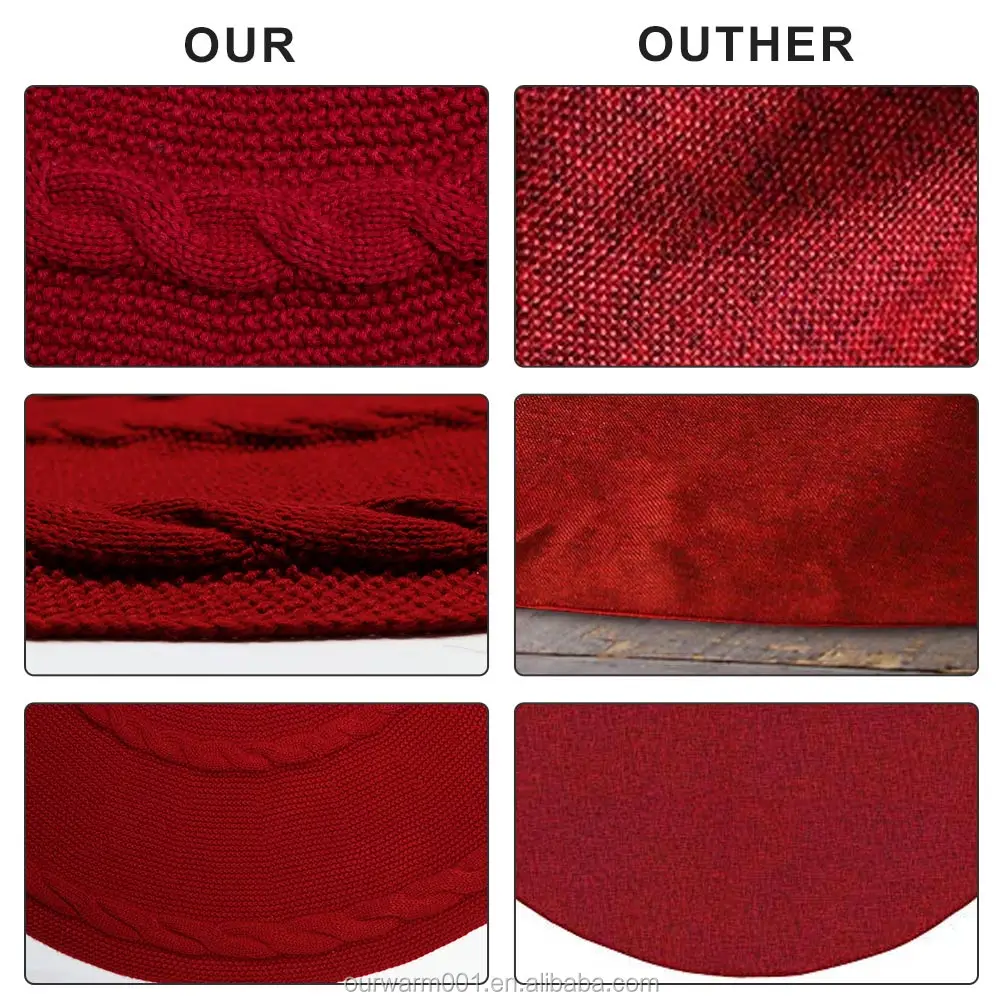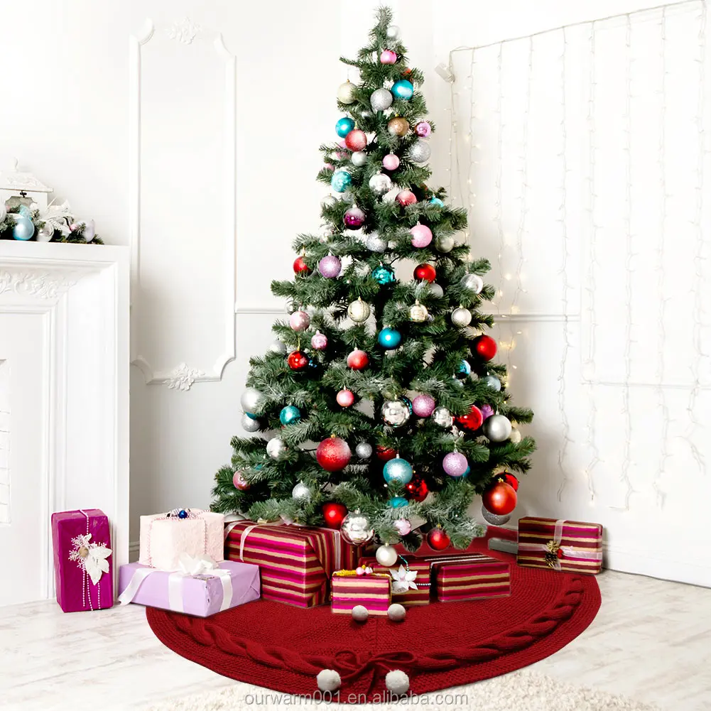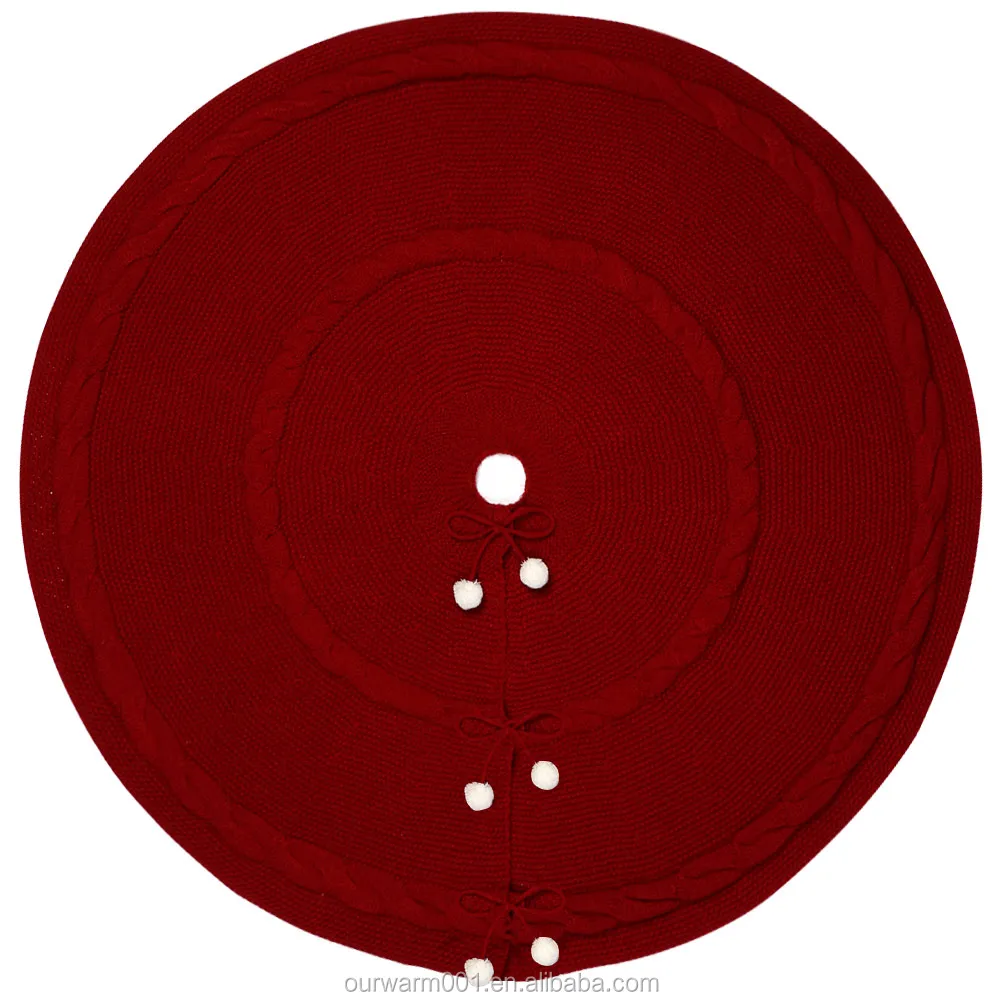 Ourwarm Wholesale Xmas Tree Decoration Round Cotton Wine Red Knitted Christmas Tree Skirt | ||||||||