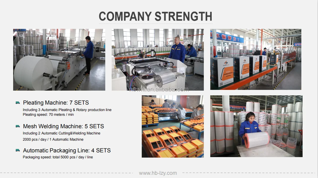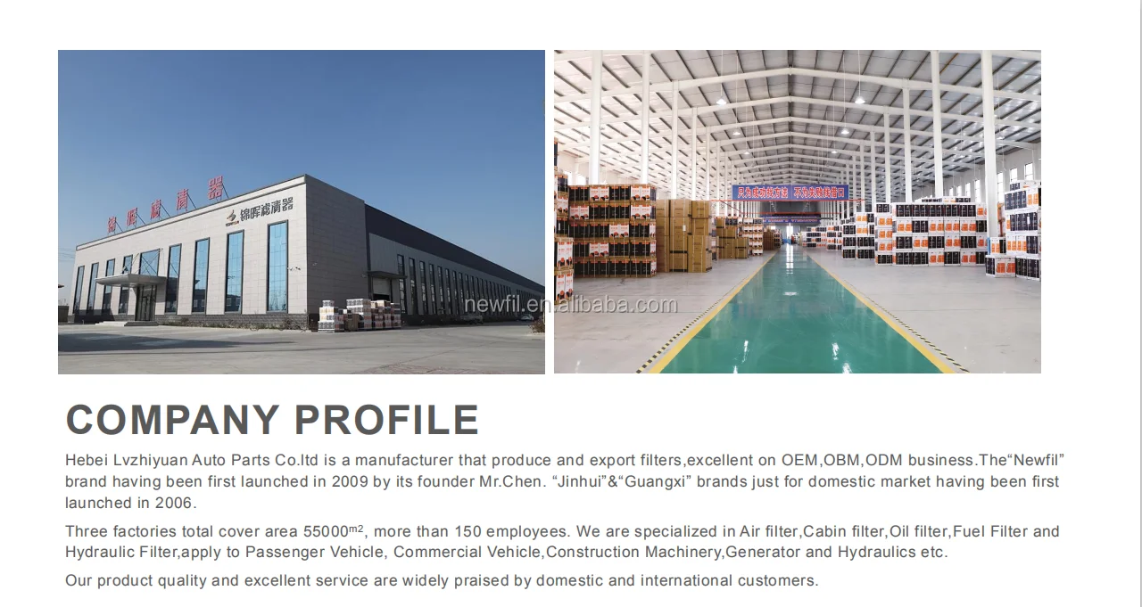 HEBEI LVZHIYUAN AUTO PARTS CO.,LTD one of leading auto filter manufacturers in China,Covering area 55000 square meters, More than 150 employees. Specialized in Air filter,Cabin filter and Oil filter,application to Commercial cars,Trucks,Construction machines,Agricultural Machinery,Mining Machine etc.