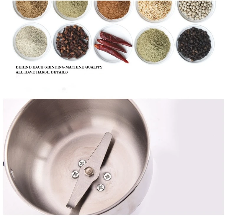 1. The smashing materials is not exceed half of the smashing groove. 2. The smashing materials should keep dry, no moisture and grease. 3. When it starts up, please shut off the power supply immediately if the blade is stuck by the smashing materials and the motor does not run (buzzing noise occurs) to avoid burning the motor, and then remove the blocks, check the fuse and restart the machine. 4. Usually smash the hard medicines into powder for a minute. Do not continuously operate the machine for a long time, you can use this machine in interval. 5. Do not clean the machine with water, you can clean the machine by cloth or brush. 6. During using, do not open the upper cover or put your hands. 7. You must shut off the power supply if the motor does not run. If you need to grind your grain or seed very fine, please make sure your grain is very dry, you can grind that twice or more times.