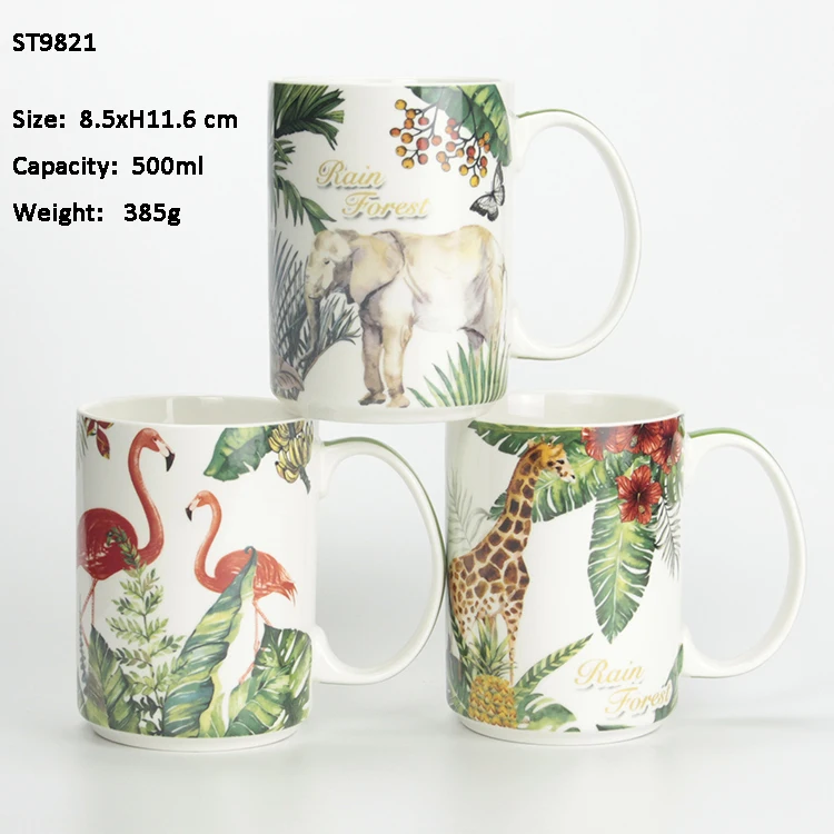 Custom elephant print fully wrapped ceramic wholesale porcelain mugs