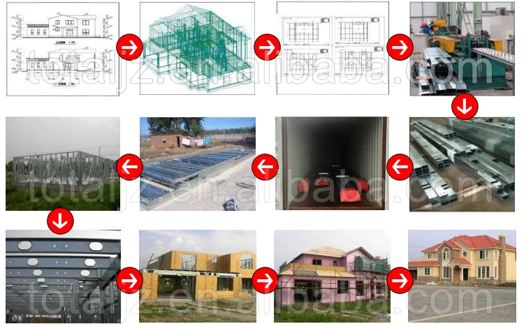 1) Light steel structure parts manufacturing factory and mechanization, high degree of commercialization.
