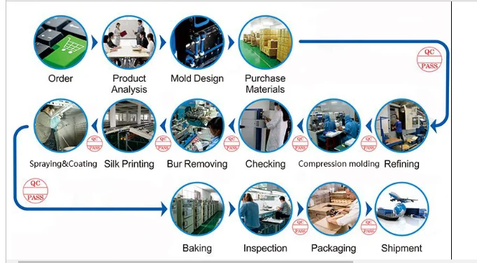 1. Quote According to 2/3D drawing and specificatio ↓ 2. Discussion Mould making/material/quantity/pirce/payment etc ↓ 3. Make PI Confirm all the transaction details ↓ 4. Deposit T/T in advance ↓ 5. Product design Our engineer team would check the product drawing and design the configration ↓ 6. Mould design Our engineer will do DFM and send PPT to customer for approval ↓ 7. Mould making We start make mould after the customers confirmed the drawing ↓ 8. Mould testing We will express trial samples to customers for confirmation ↓ 9. Mould repairing We will modify the mould according to customer’s feedback ↓ 10. Mould approval Send the trial sample again until the mould was approval ↓ 11. Production Conduct the order with strictly quality standard ↓ 12. Products inspection Ask customer or agent inspect the cargo before delivery ↓ 13. Balance payment Customer pay the balance before delivery ↓ 14. Delivery Delivery by sea or air according customer’s requirement