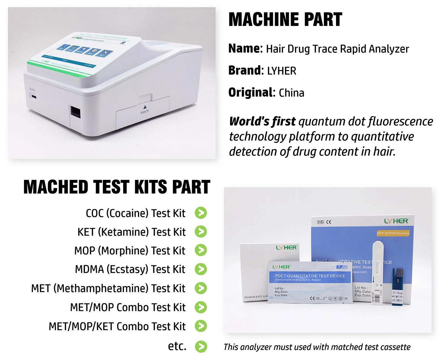 Test item | COC (Cocaine), KET (Ketamine), MET (Methamphetamine), MOP (Morphine), MDMA (Ecstasy),BZO (Benzodiazepine), OXY (Oxycodone), PCP (Phencyclidine) |