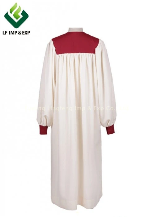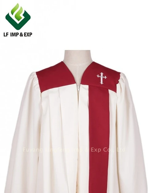 Robe | V-neckline, closed elastic cuff A white embroidery latin cross on shoulder Front features one 2.7'' wide red stole Front hidden zipper closureBeautifully gathered yoke and shoulders |
