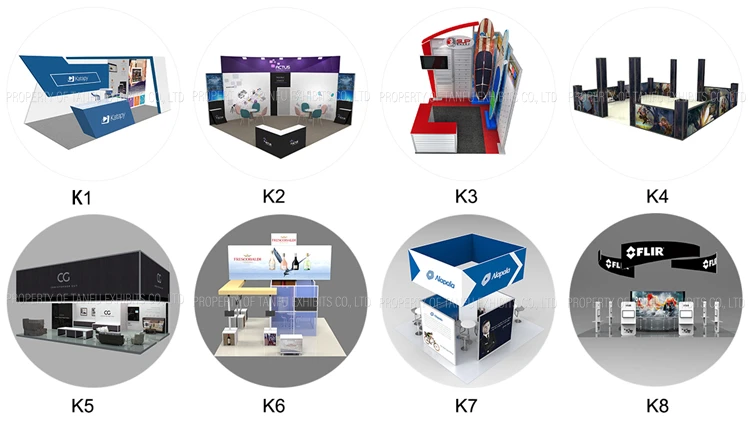 TANFU exhibition booths are modular system, you can downsize a 6mx6m booth to a 3mx6m exhibition booth, or a 3mx3m booth to expand a 6m*6m size. And you can easy change the graphics, just order a new printing of graphic from us or local. So easy.