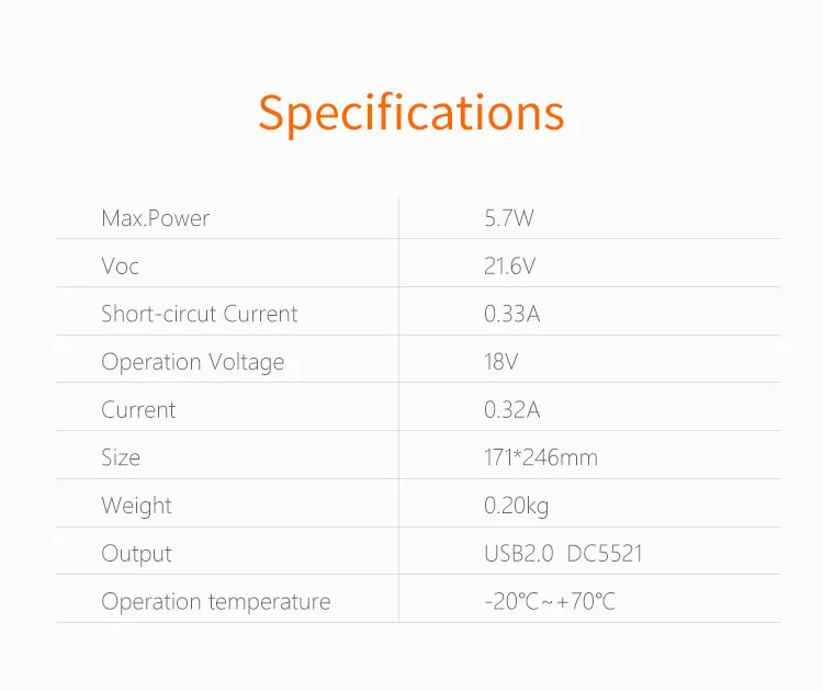 Power | 5.7W | Size | 171*246mm |