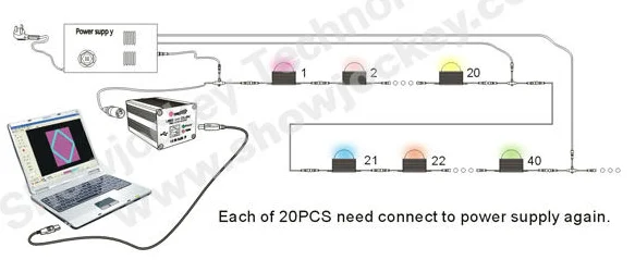 3. With DMX interface, controlled by Showjockey LED controller, it can achieve color fading, skipping, scanning, chasing and play flash and video, etc.