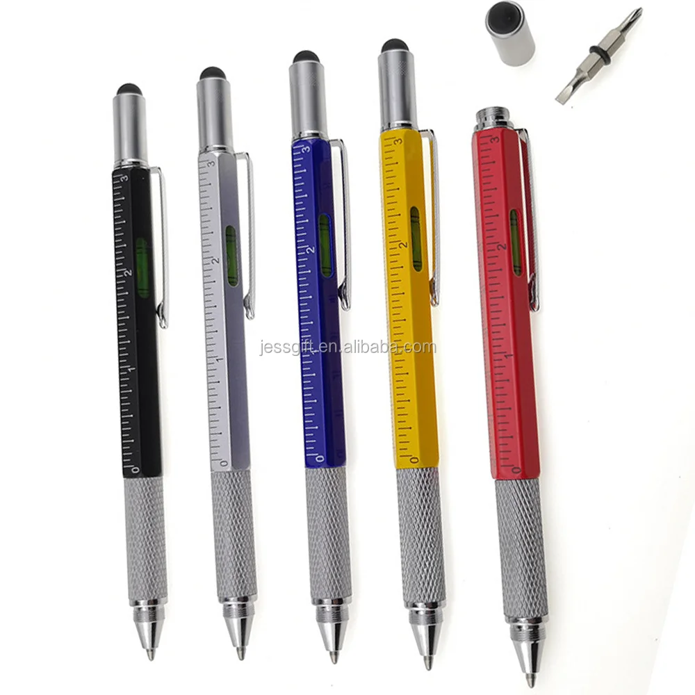 5 in 1 multifunction plastic tool pen with phone holder level screwdriver ruler ballpoint pen | ||
