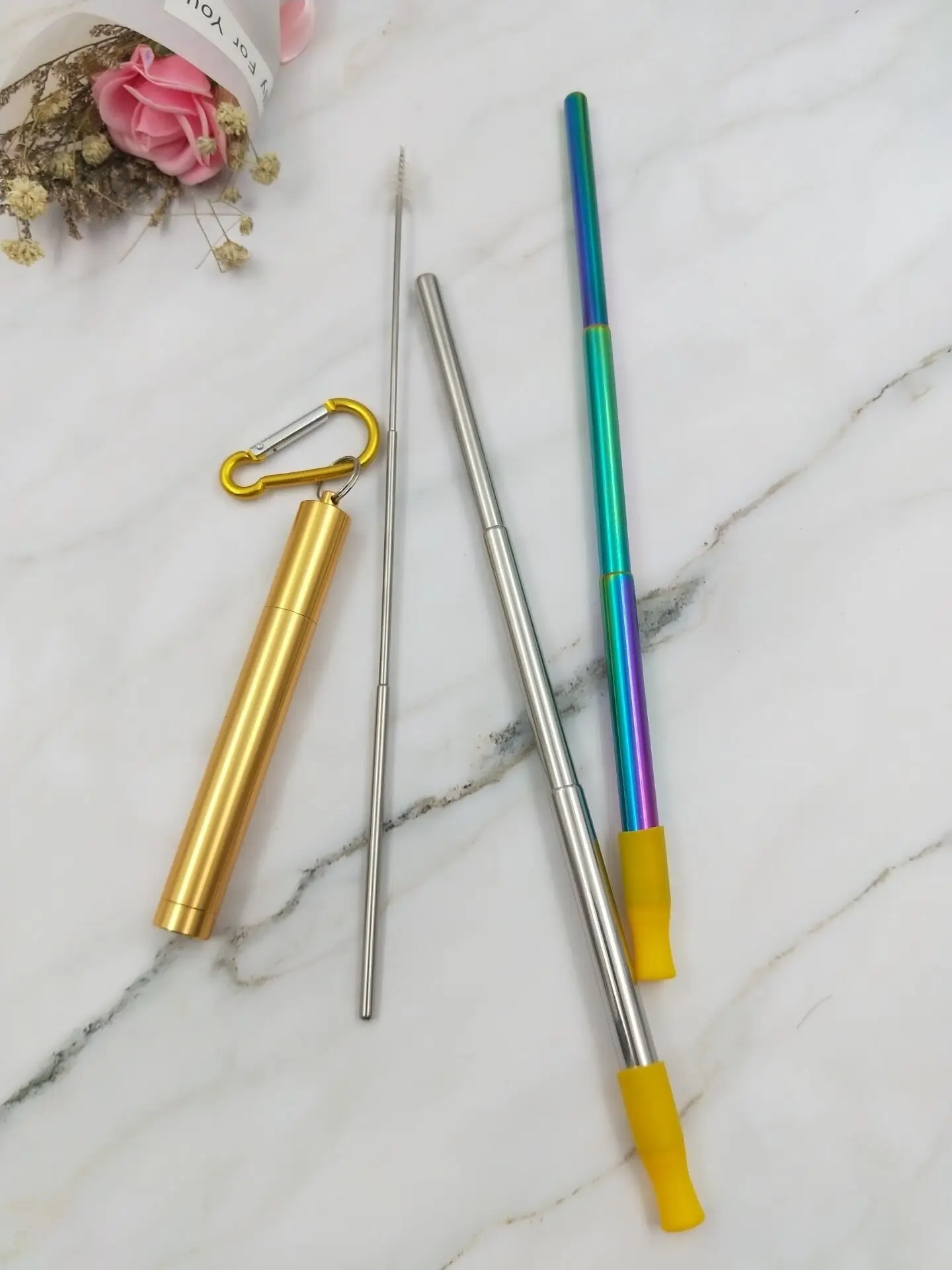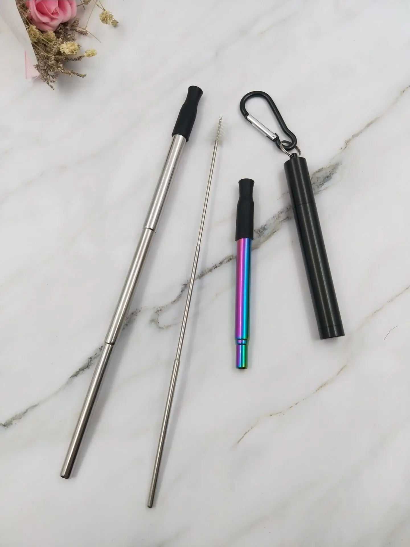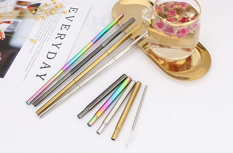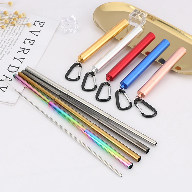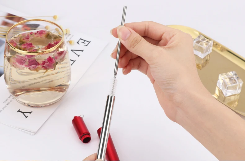Feature | Collapsible Portable Reusable Metal Straw. |