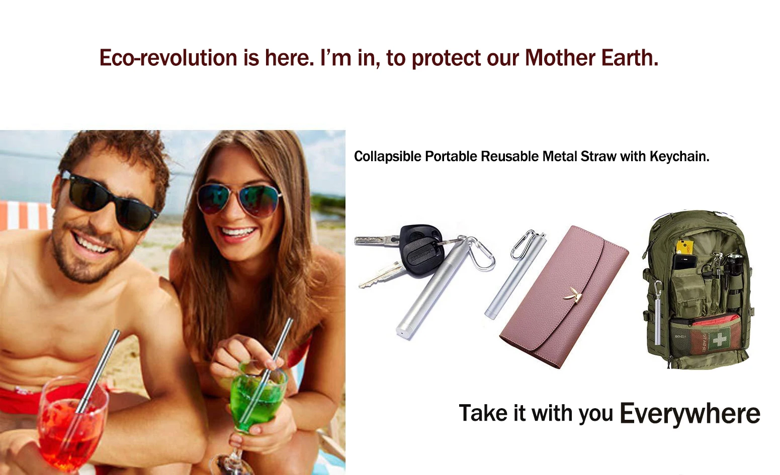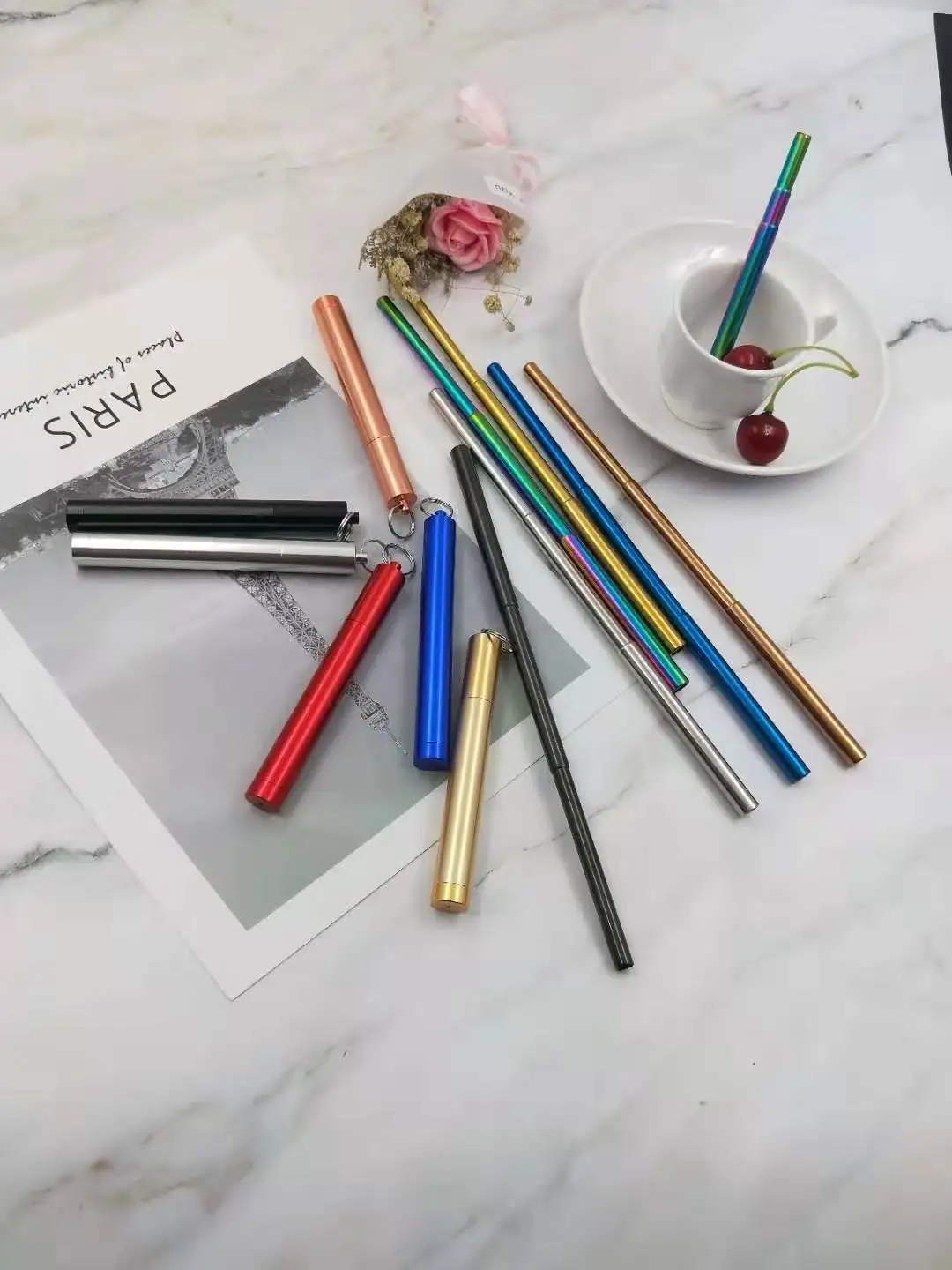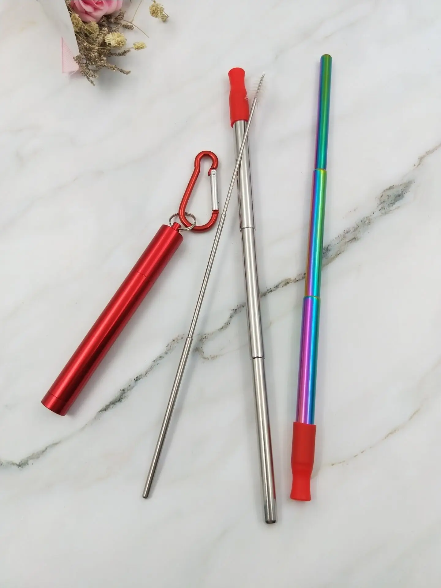 Feature | Collapsible Portable Reusable Metal Straw. |