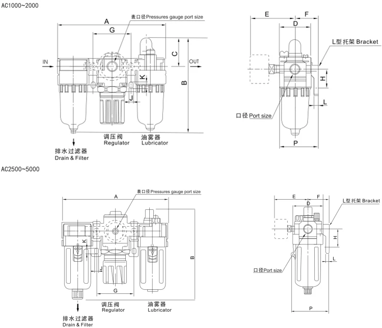 AC1000~5000 Series F.R.L,Filter,Regulator,Lubricator,air source treatment component