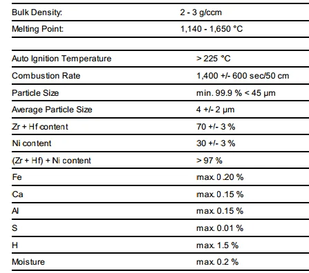 Zirconium Nickel alloy Powder |