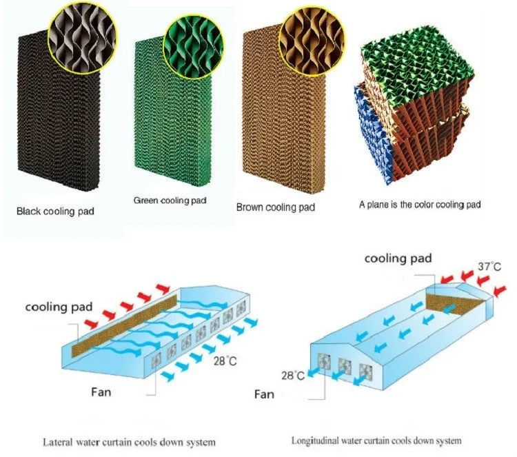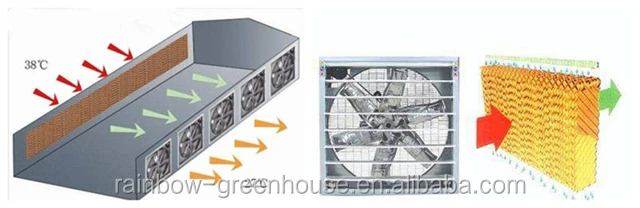 Evaporative Cooling Pad is widely used in greenhouse, poultry farm, livestock house, factory, workshop, supermarket etc., working with Exhaust Fan.