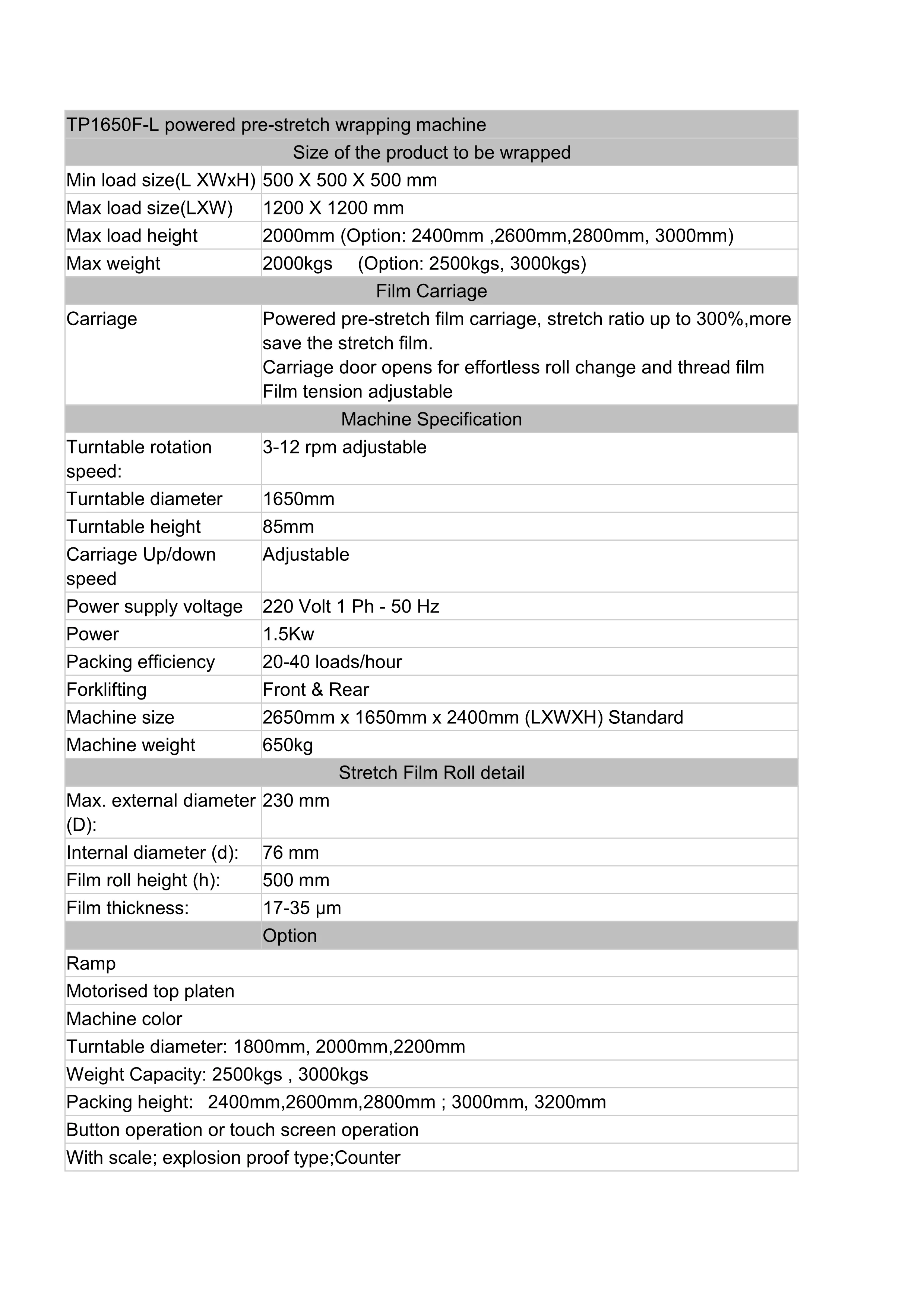 TP1650F-L | General type automatic pallet stretch wrapper |
