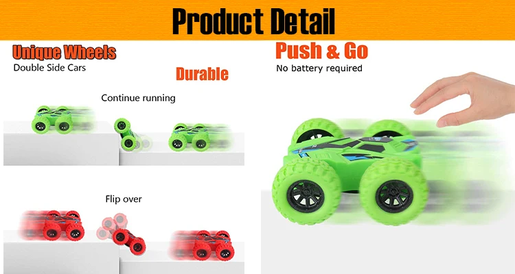 4 Pack Friction Powered Car Toys Push and Go toy Cars for Toddlers Double Side Rotation Flips Mini Cars kids gifts inertia