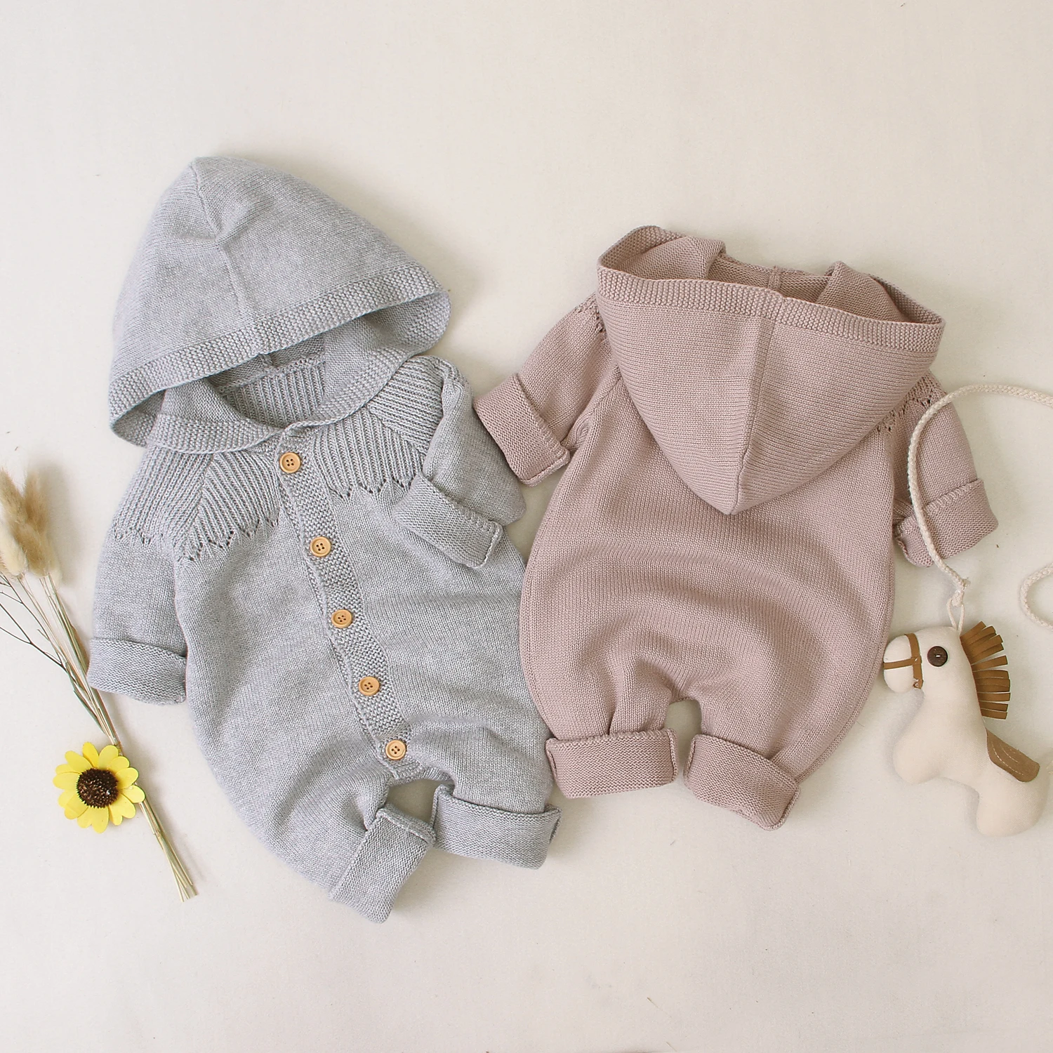 Product Description | 100%cotton knitted long sleeves baby rompers winter |