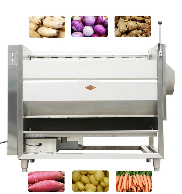 a.This machine uses attrition roller to peel off the deeper skin of vegetable and fruits, the peeled vegetables' surface is very smooth.