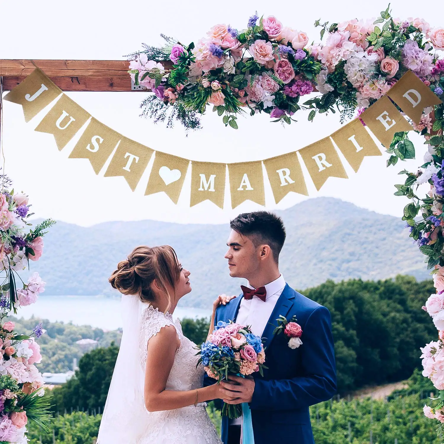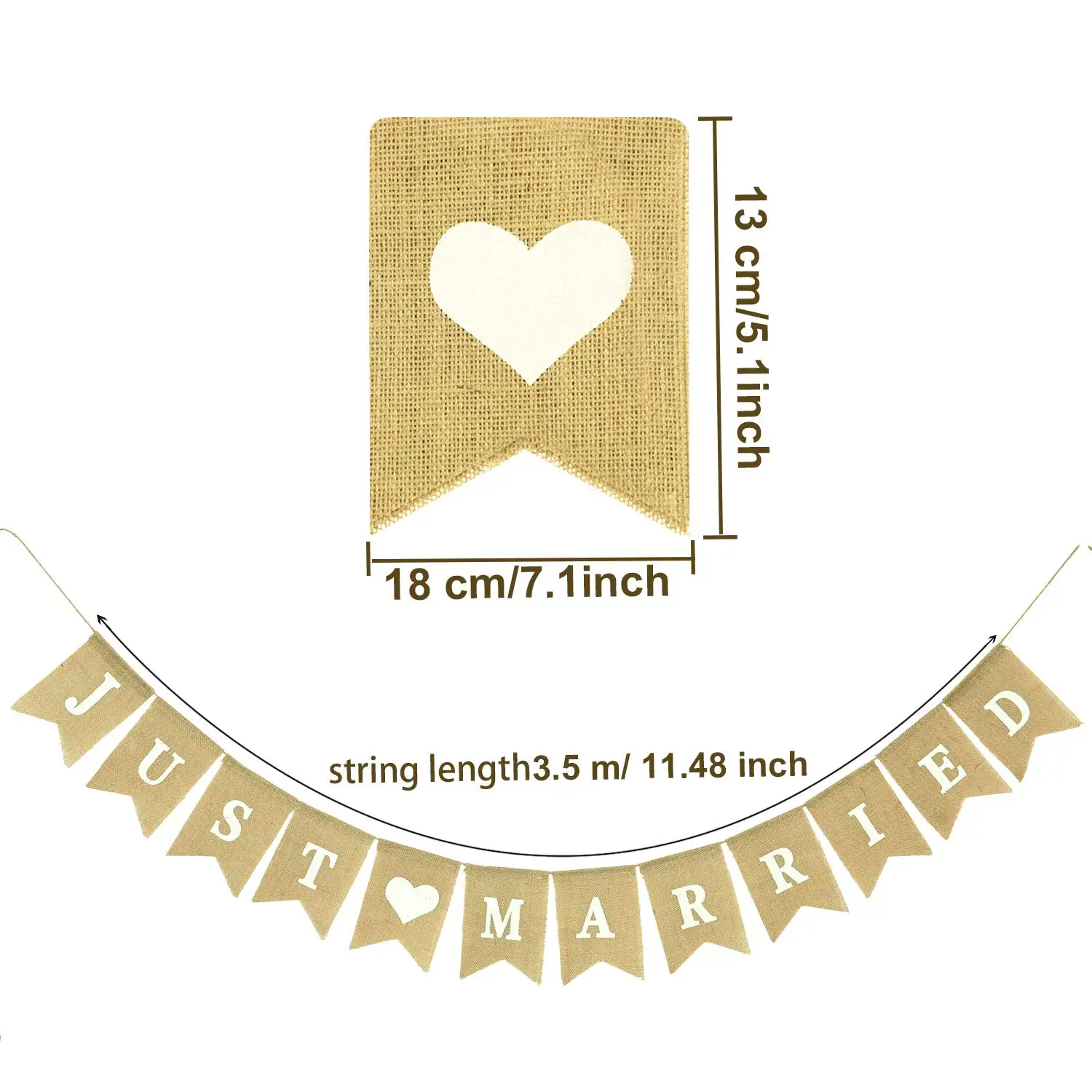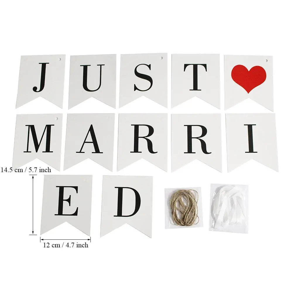just Married Banner Burlap Wedding Banner Heart Patterns Romantic Wedding Decoration for Wedding Bridal Shower Engagement