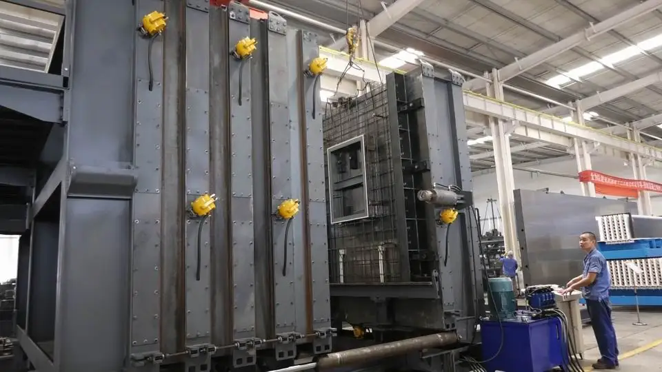 1.Battery mould is regarded as the most efficiency way to produce solid slabs. 2.High output and flexibility. Heating system accelerate the curing speed, maximum use production floor area. 3.High product quality. Smooth surface on both sides of the product,Integrated compaction system. 4.Common sizes: 3.4 m * 6 m,3.4 m * 7m,3.7 m * 10 m. 5.Moveable. Easty to assemble and de-assemble, can move to different job site for production, this will help client to reduce precast wall panel transportation cost and time.