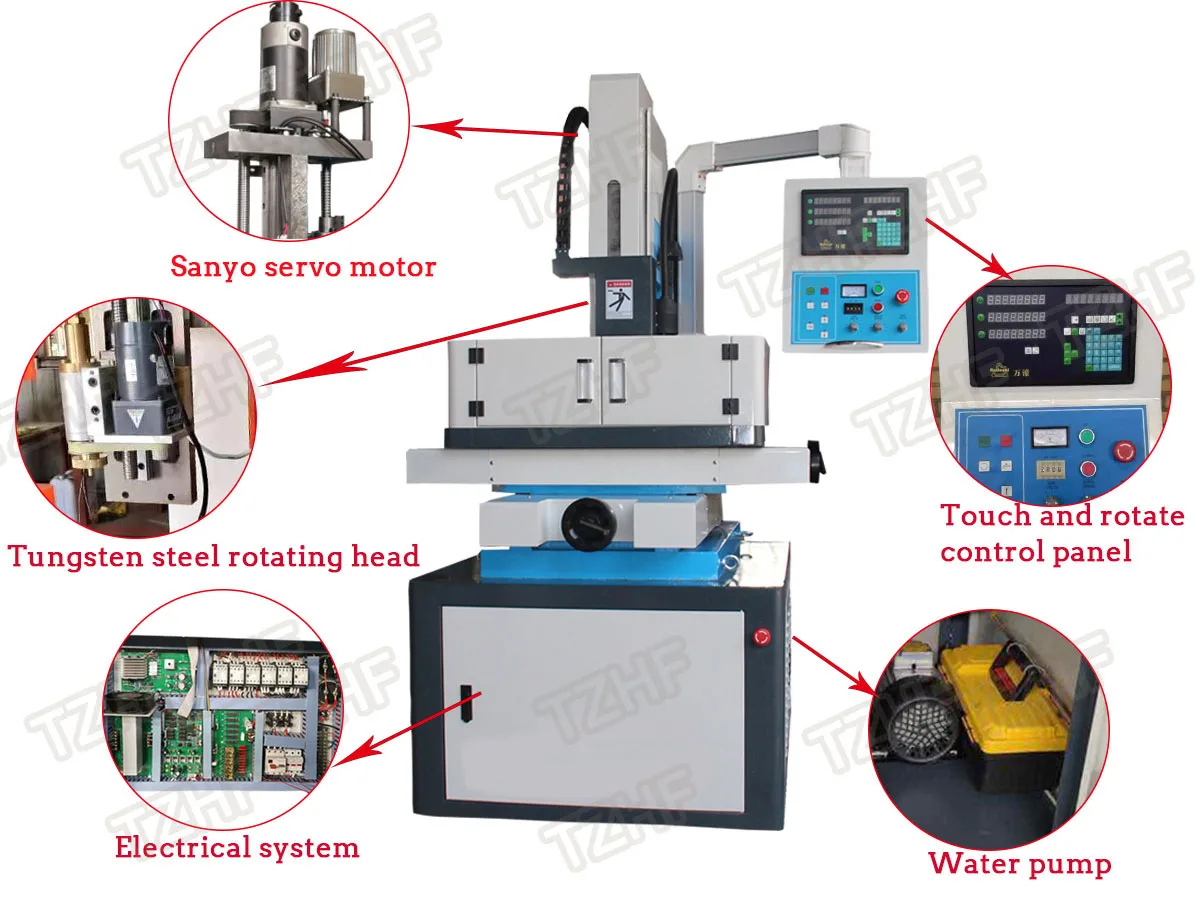 1.Used for processing deep and small size hole in many kind of conductive materials like stainless steel, hardened steel, carbide, copper, aluminum.
