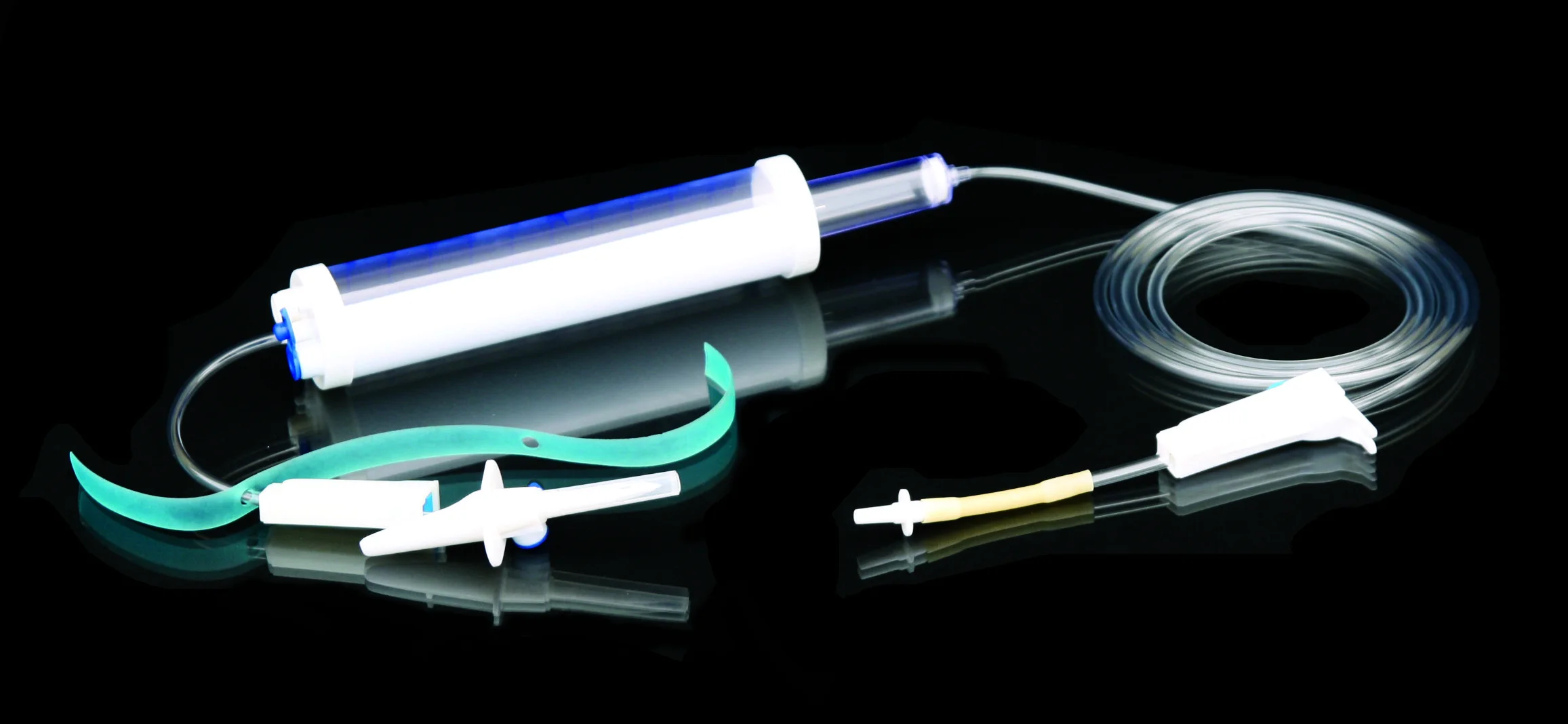 Drip Chamber: PVC, sizes according to the ISO 8536-4 standards Vented Spike: ABS Flow Regulator: ABS or PP Flexible SoftTube: PVC, 1.5m Soft and kink resistant Protective Cap: PP or PE, for closure piercing device with internal thread that prevents the bacteria from coming in Air inlet: PE (with or without) Fluid Filter: PVC (with or without) "Y" Injection Port: PVC (with or without) Injection site: Rubber (with or without) Sharp Needle: Stainless steel (with or without), Hypodermic needle or Butterfly type needle available