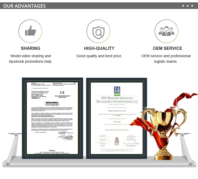 Our brand name EM Optical major in providing OEM services and major in optical area. Our company mainly processes in contact lenses, lenses, such as progressive lenses, blue cut lenses and so on.