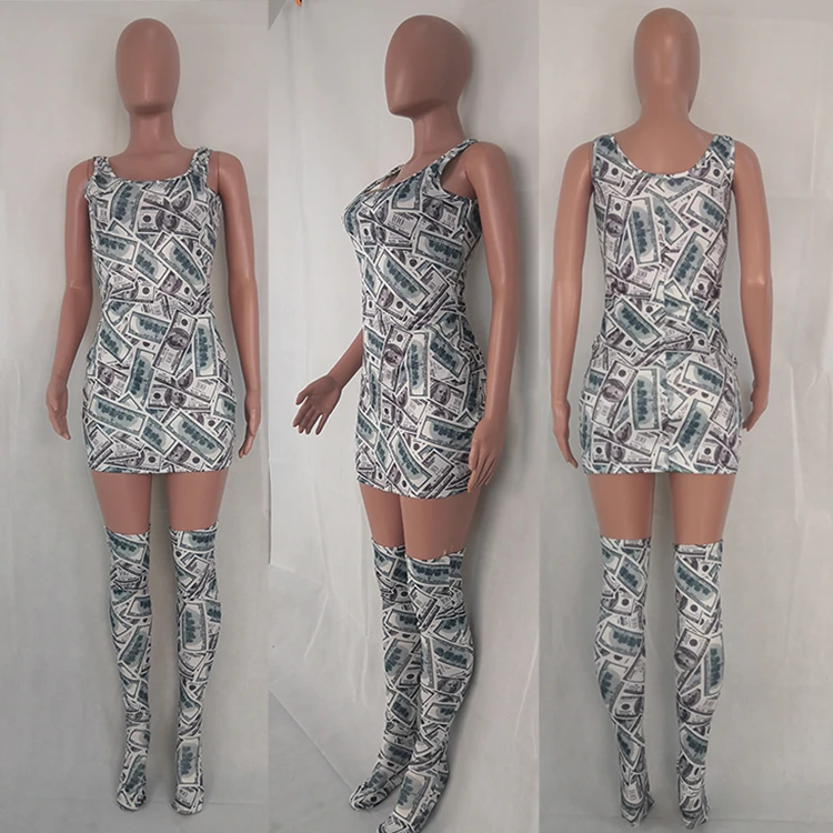 | Model number | 11AF031 best seller dollar print bodycon dress thigh high sock Dress Clothing Women Two Piece Set 2019 |