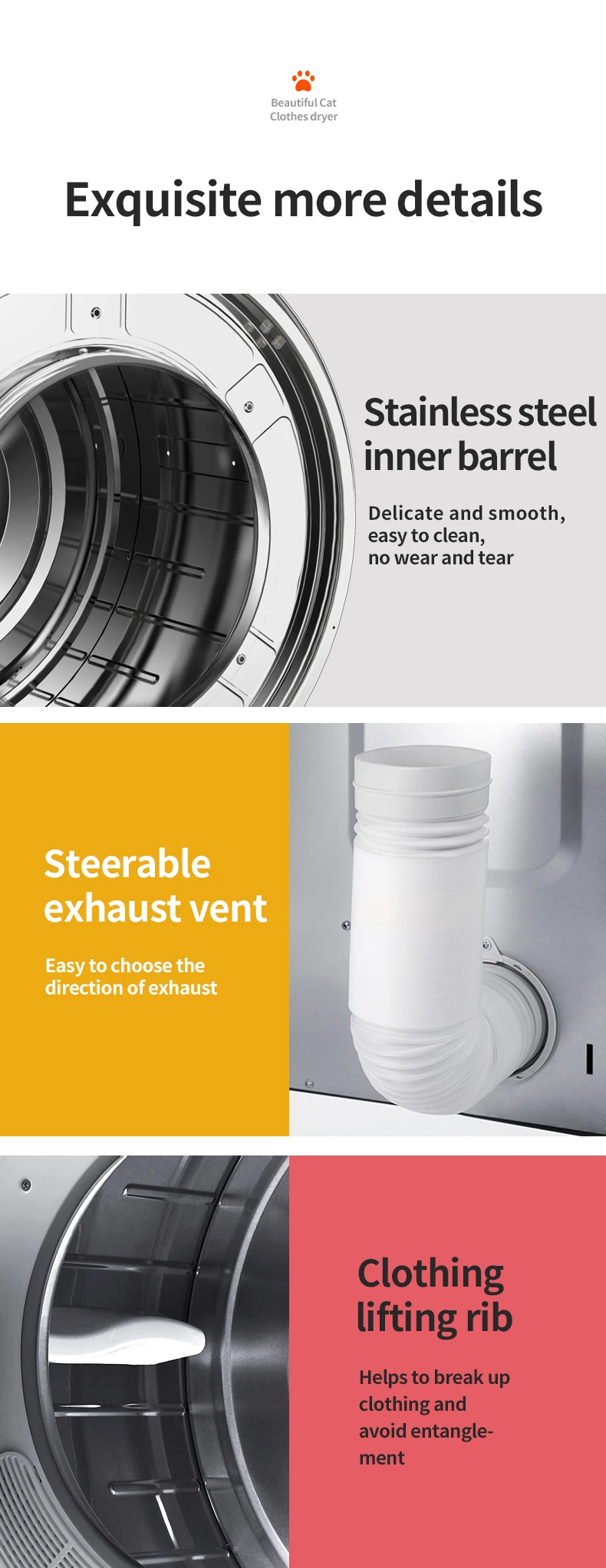 The company is located in Shanghai, the Beautiful Cat is a high-tech enterprise that develops and produces tumble dryer. The products are exported to all over the world. After 3 years’ development, we have developed into a mature manufacturer of tumble dryers.