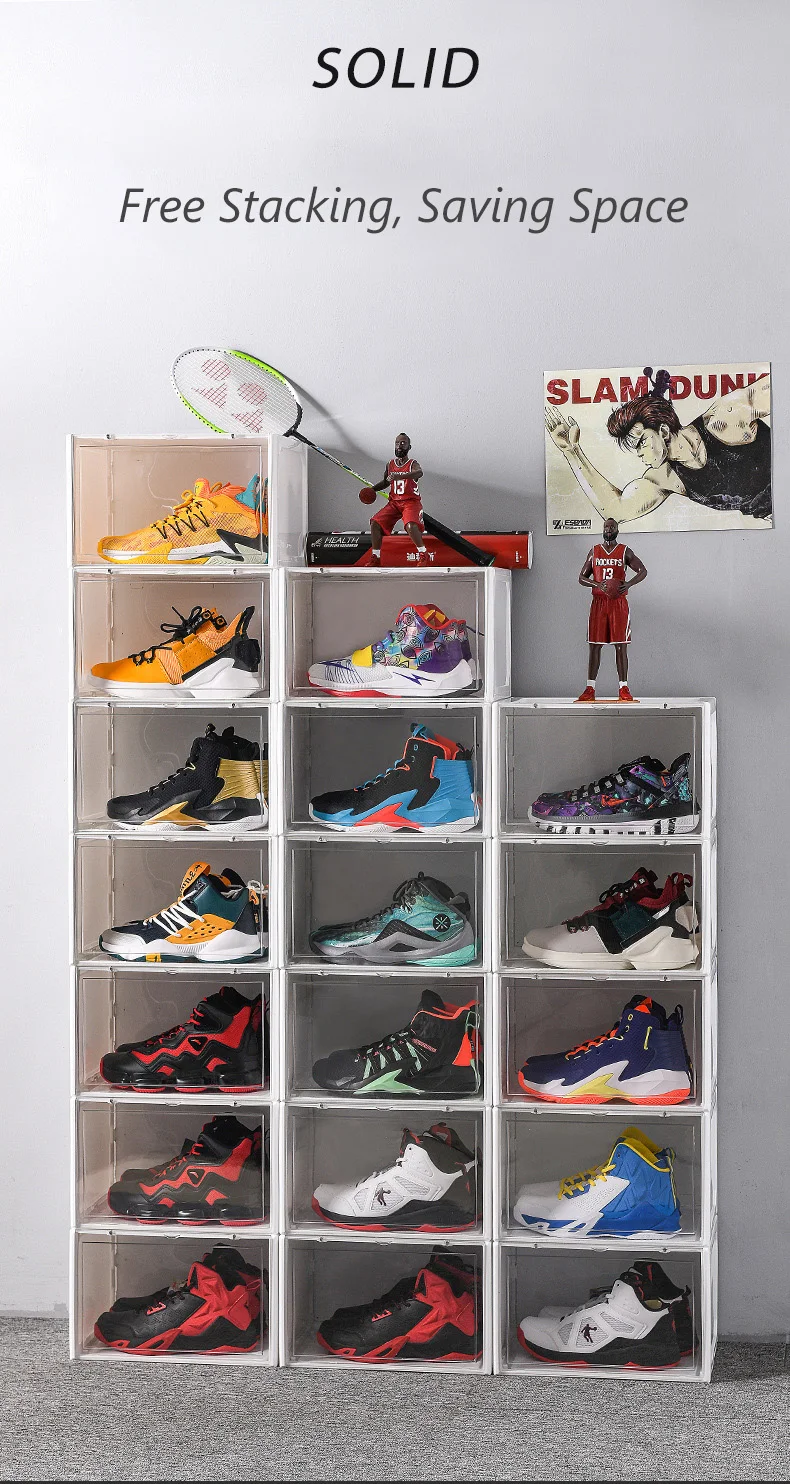 Штабелируемая огромная прозрачная акриловая пластиковая коробка для спортивной обуви, спортивная акриловая коробка для обуви