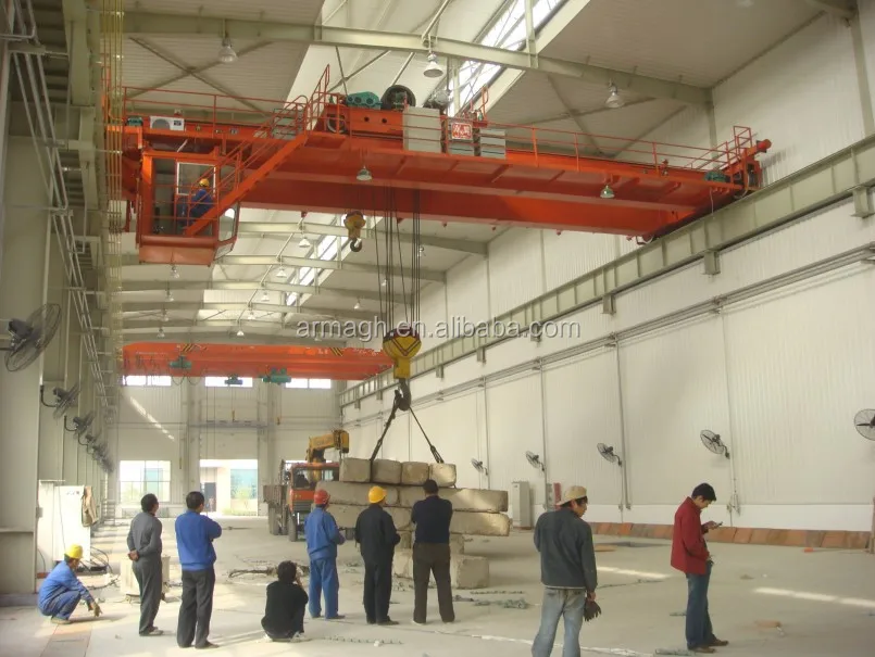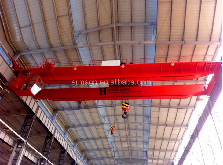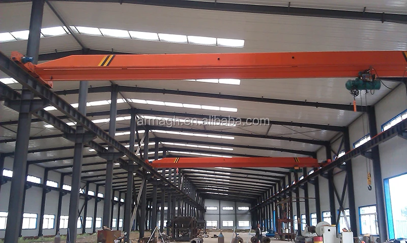 double girder overhead crane is widely used to upload and move of normal weight in the fixed crossing space and also can work with various special-purpose hoist in special operations.Two girders are simply stronger than one, making double girder traveling cranes the ideal solution for the area coverage handling of heavy loads up to 32/5t. Like all factory cranes, these units are available with a number of main girder connection versions to best suit new or existing buildings and the best in functionality, versatility and convenience. double girder cranes feature welded box beams. All the sections used for main girders and end girders are computer-optimized for high performance and low weight, benefits that pay in terms of strength and cost efficiency.