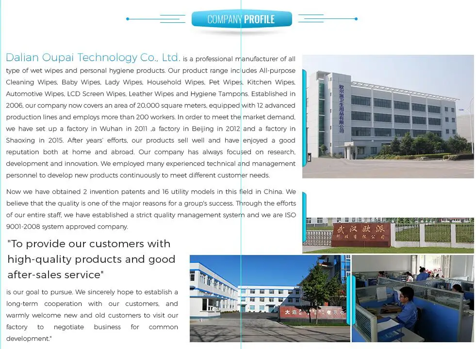 A: We're professional manufacturer specialized in baby wipes,lady wipes,cleaning wipes and other Products. OEM & ODM service are available.