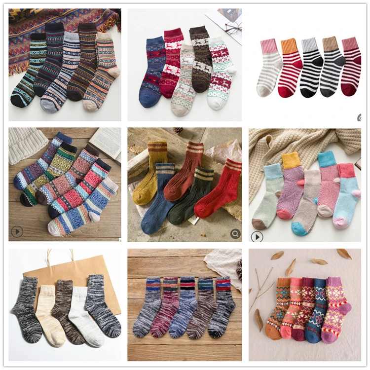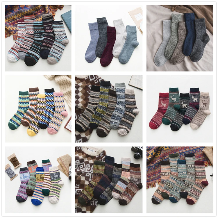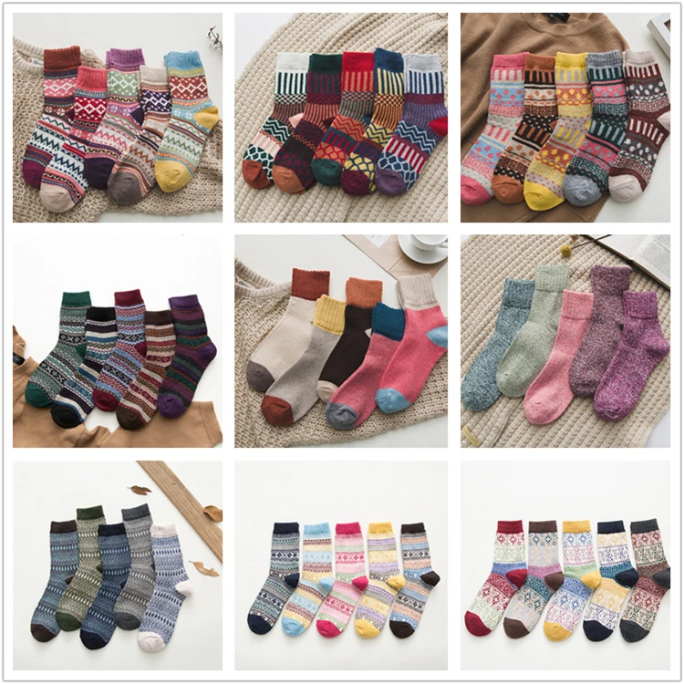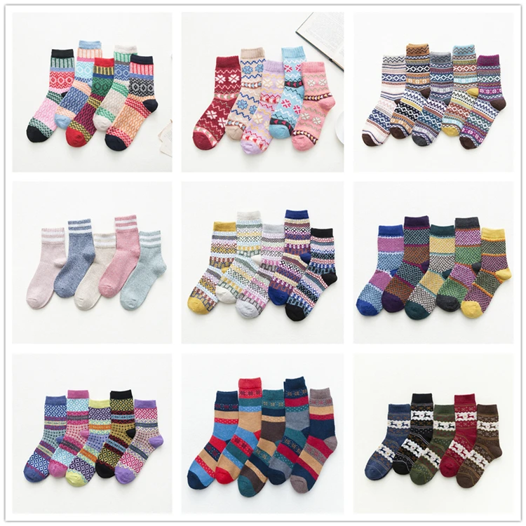 Vintage Striped Jacquard Pattern Candy Color Happy Sock Winter Rabbit Hair Wool Thicken Warm Casual Socks For Woman