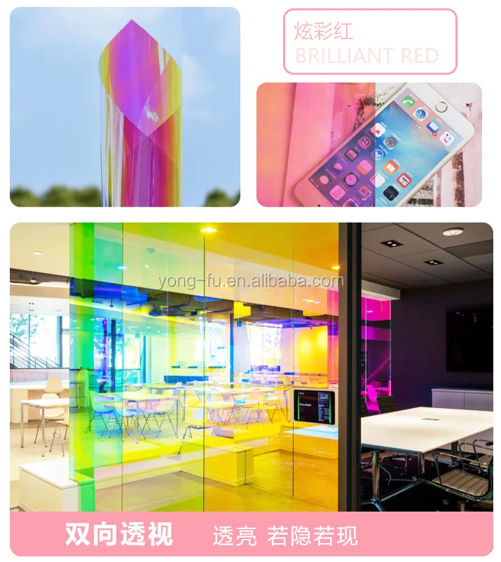 Hot Sale 2mil Transparent PVC Decorative Window Film Color Changing Rainbow Film | ||||||