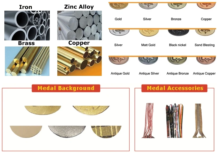 | Gold, nickel, silver, bronze, black nickel, copper, | |
