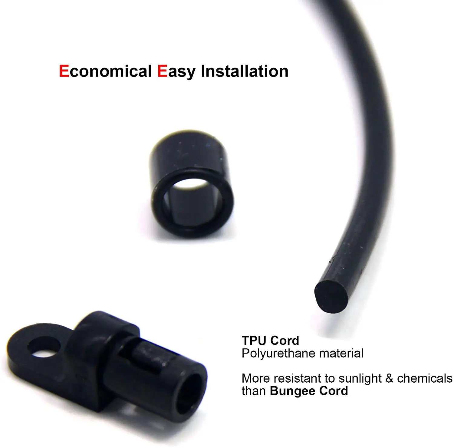 Features: Black poly material will not get hung up in fish hooks or lose their hold when wet Strap remain unaffected by sunlight and most chemicals Compared with bungee rope material, TPU straps can't stretch Gunwale mounting flange mounts into a 3/4" hole in the gunwale with 2 countersunk screws Strap can retract into the gunwale when not in use Deck Mount - Strap end mounts to the deck with one countersunk screw