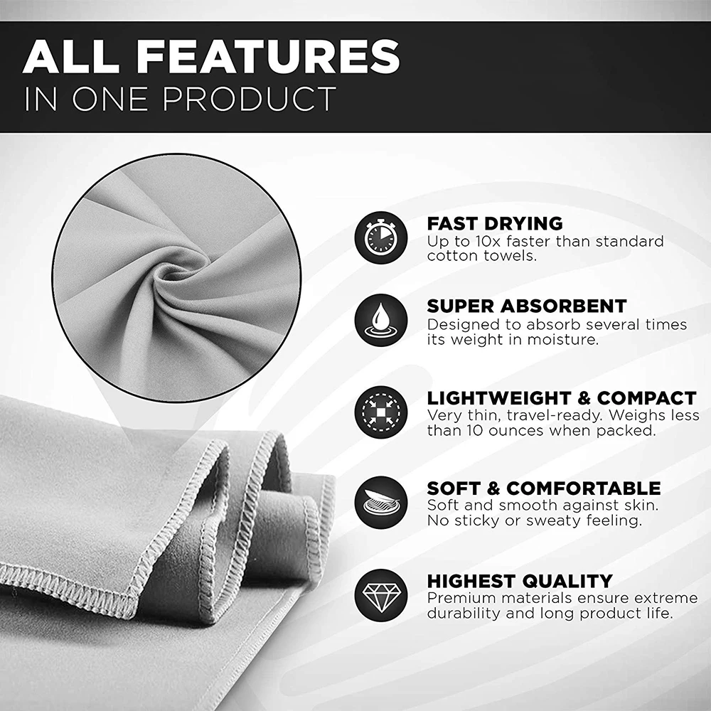 Feature | Super water absorption, Quick dry, Skin care, Lightweight, Durable, Machine washable,Ultra Portable |