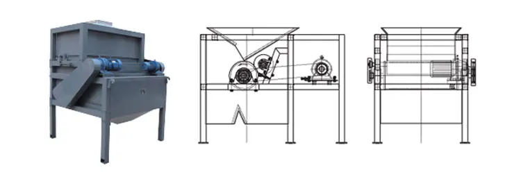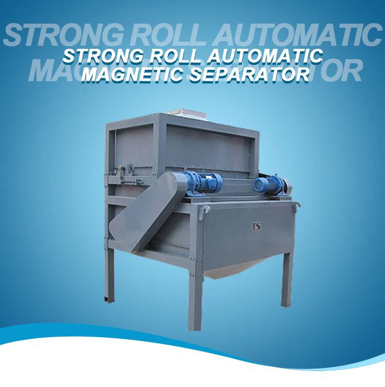 DHJ type strong-roller automatic magnetic separator is a new type of dry-selection equipment that our company has developed independently for many years' market experience, and has applied for national patent. The 1-10 layer structure can be produced according to the requirement, and the multiple sorting of the materials can be realized. The operation principle of the material is that the material falls into a constant-speed feeding device through a storage bin, and the material and the magnetic substance are subjected to gravity and vibration in a vibrating way before the material enters the magnetic selection area through the feeding device, so that the magnetic substance of the adhesive or the package is basically dispersed. and the magnetic mineral is adsorbed on the surface of the magnetic roller to reach the fine mining area, The brush removes the magnetic mineral that is adsorbed on the surface of the magnetic roller. The machine has the advantages of excellent separation effect on small and medium-sized and medium-sized and small-sized granular ore with less powder and ore ratio, high production efficiency and simple and convenient operation. in particular to manganese ore, hematite, pseudo-like hematite, mirror iron ore, siderite, manganese ore, chromite-iron ore, limonite, siderite, chromite, iron-iron-iron ore, titanium-ferrous iron ore, black-tungsten ore, iron-in-rock ore, apatite, phosphorite ore, olivine, The dry magnetic separation of biotite, epidote, serpentine, primary ilmenite, coastal placer, primary rutile, wolframite and most of the rock-forming minerals, such as quartz, feldspar, calcite, biotite, amphibole, olivine, tourmaline, pyroxene, etc.