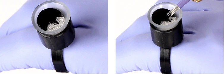 1. Transparent color, easy to distinguish the color of the pigment. 2. PE plastic material, light weight, you can also adjust the size of the ring. 3. There is a lid, you can extend the use of ink or glue the use of time, but also stored to the next use. 4. Not only can be used to install embroidery ink material, can also be used to hold the eyelash glue. 5. Suitable for home or professional use.